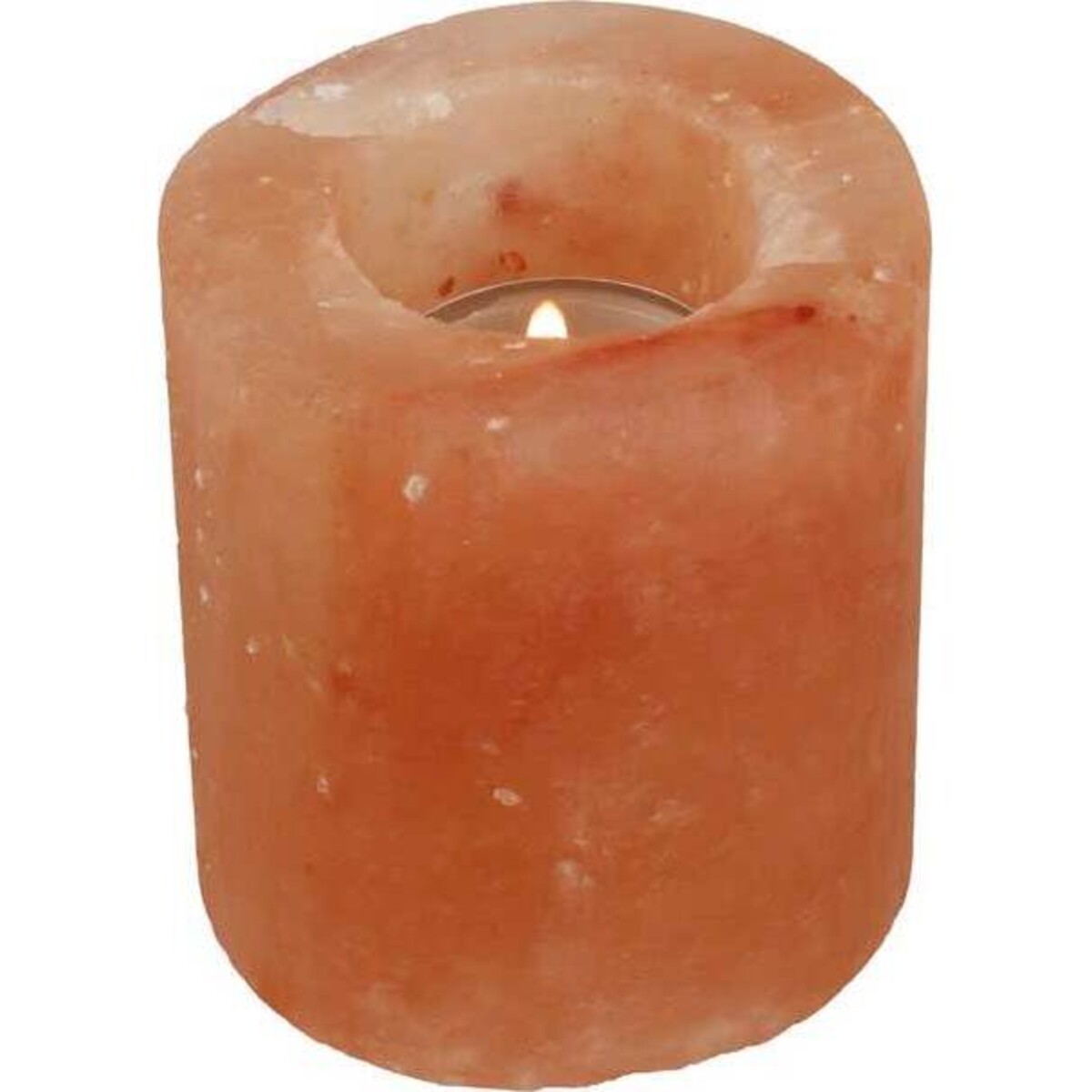 The crystalline quality of the votive feels so natural as does the texture and colour - when not lit from within this votive has a subdued pale amber look and when the tea light is lit, it glows from within in manner that is completely unique in effect. This votive has been made from natural occurring Himalayan rock salt that lends its natural colour to the light. The textured votive has been handcrafted from the crystals salt that occurs in nature which makes this votive all the more novel and unique. The rock salt is supposed to neutralize the air by reducing negativity and anxiety and thus having this kind of a votive serves a dual purpose. As an illuminating accent it's fabulous in every sense. Juts about 9 cm in height and diameter it has been carved to a cylindrical shape and a tiny compartment has been created for small little tea light which can be easily tipped over once a replacement is needed.