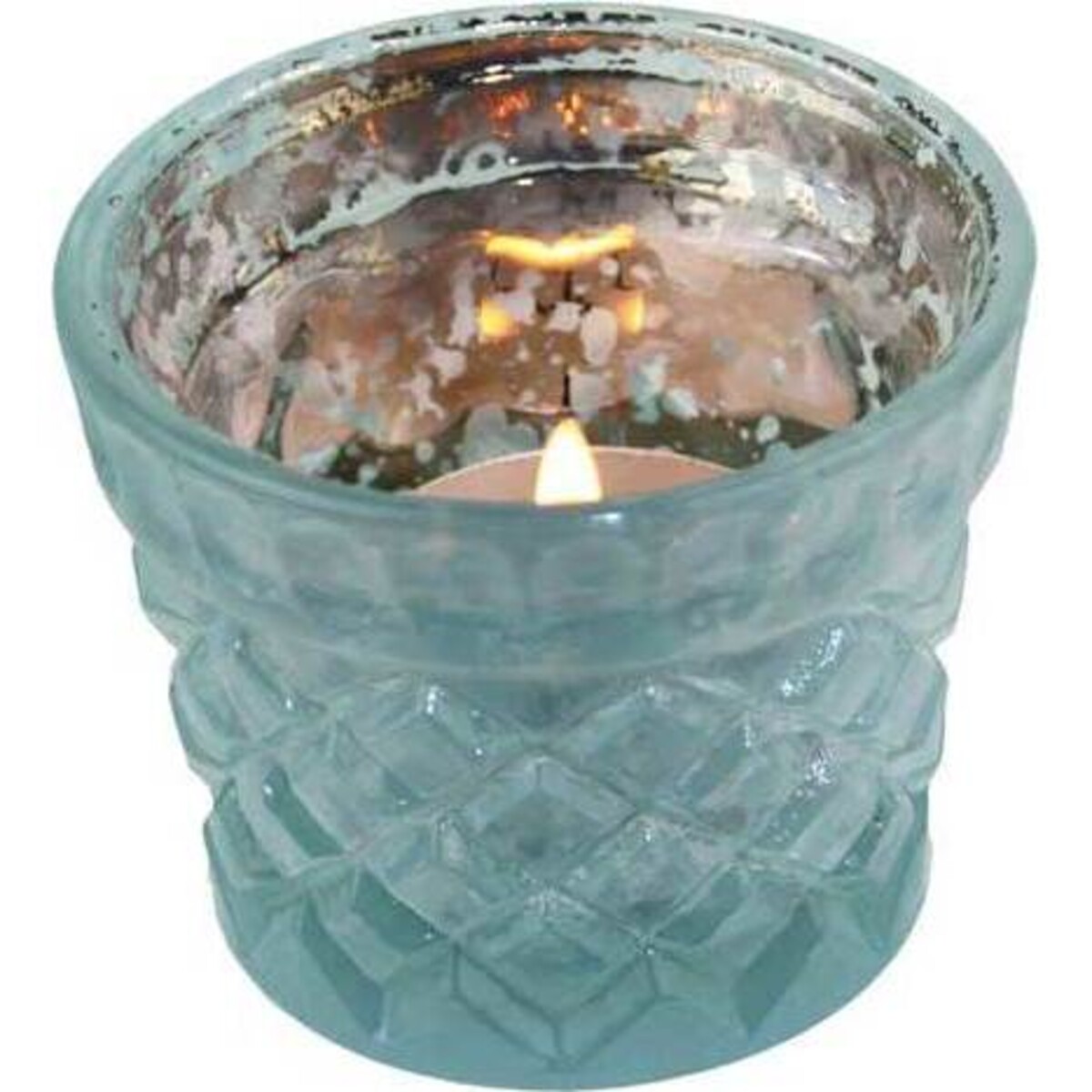 Votive Silver Aqua measures 7x7x6 cm and is made using glass of silver aqua shade. The outward part is patterned in unique form, whereas the inside section is shiny and hollow for fitting in a candle. Both religious facilities as well as places of worship would benefit in great ways by setting up a couple of these inside their devotion rooms. The light produced by this gadget should occupy a given space with ease, owing to the wide surface - area available at the top for its dissemination. Votive Silver Aqua looks somewhat classy and is constructed in a durable way.