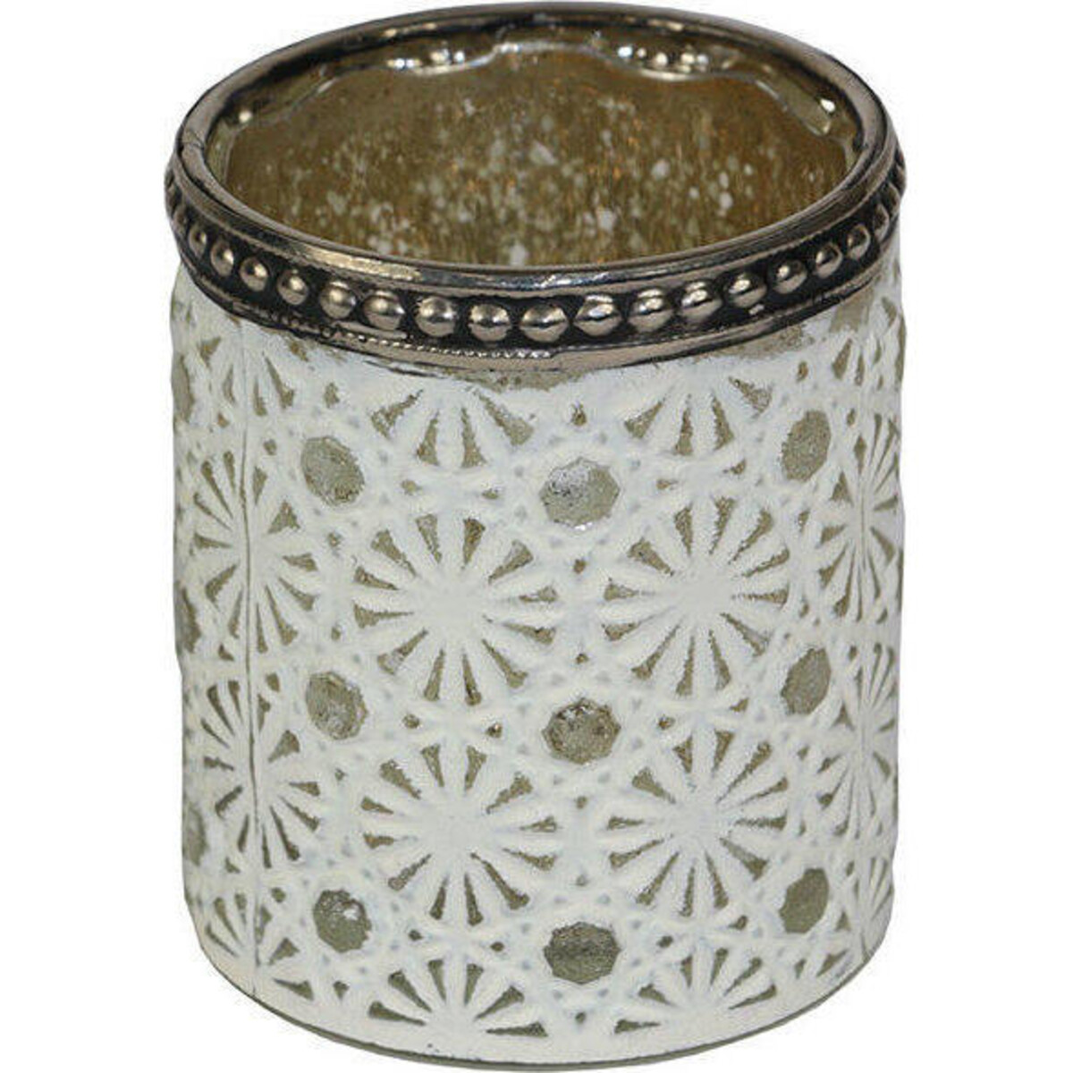 Create warm glow of light that relaxes and sets the mood for things sublime with this simple little inclusion. Tealights of a standard size can be lit and that is all that would be need to bask in the beauty of this sunburst pattern votive that will help light up as much of your interiors as in the outdoors.