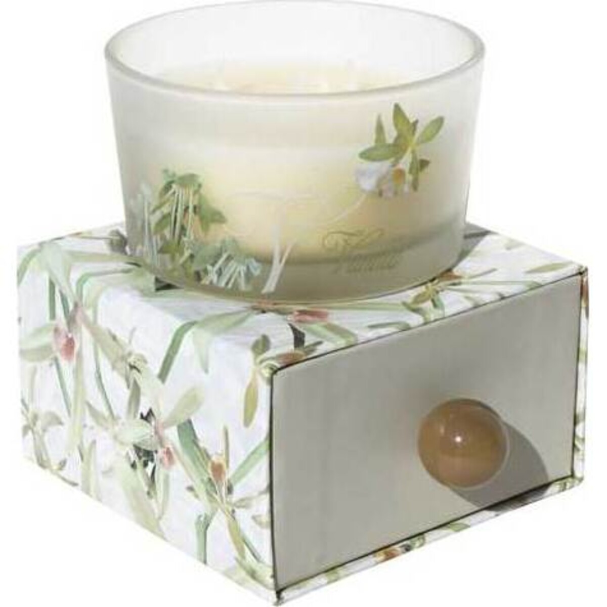 Each vanilla candle comes in a short, frosted glass that's decorated with a beautiful white and green leaf design. As an added bonus, they each come in a small sturdy cardboard box that consists of a drawer with a brown knob at the front and a lovely pattern to match that on the candle. Not only are the candles functional, but the boxes are as well and useful for storing small items. Talk about a fabulous gift for yourself or a loved one!