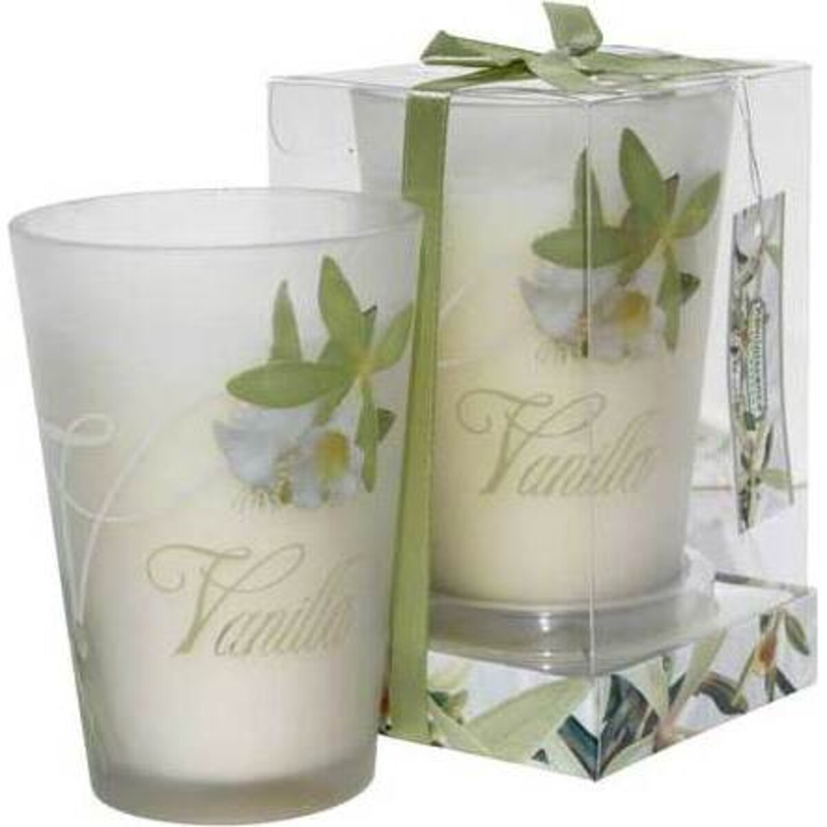 Each white vanilla votive comes in a frosted glass that's scrolled with the word "Vanilla" across the front and features a white flower with green leaves above it. As if it wasn't fabulous enough on its own, each one comes in a clear box on top of a cardboard pedestal featuring the same flowers as on the glass. As a finishing touch, each box is wrapped with a green ribbon and topped off with a bow. Whether you give this gift to yourself or a loved one, it's one that's sure to please.