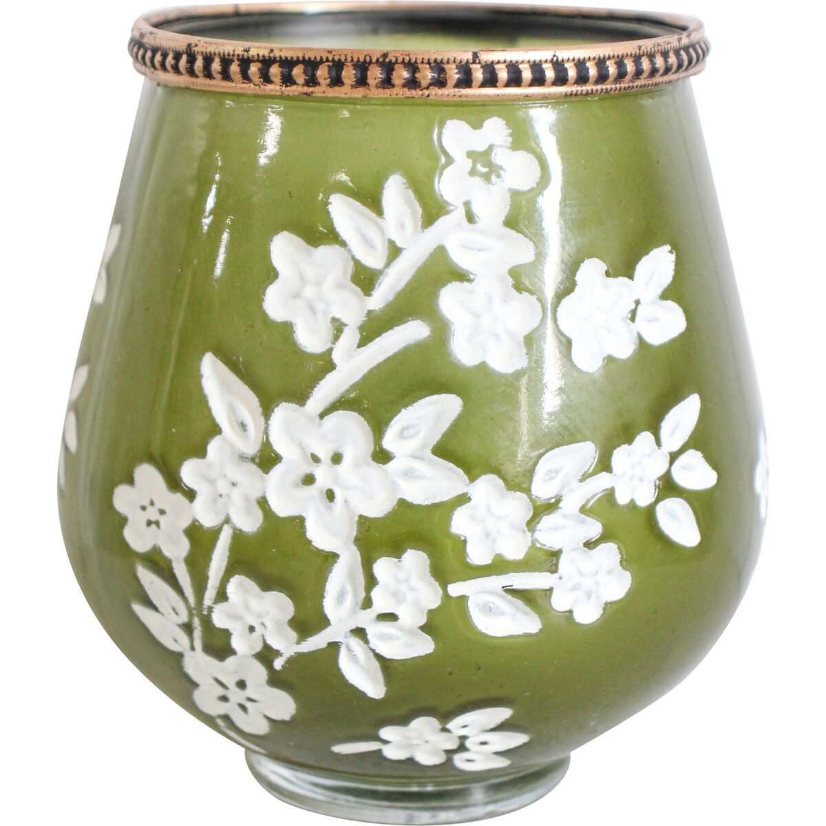 Candles render your spaces more intimate and attractive owing to the ability they possess to create hints, depth, focus and a warmth that emanates from the golden glow of flames.in this case the colour of the glass will complement the glow from the flame. As the candle or tea light is lit the votive will light up from within further highlighting the pretty little botanical pattern on its exterior. The smooth outer body glows in a shimmering olive gold colour as you illuminate the tea light. The votive is great for individual dinner seating-side tables, spa like settings and also your bedside, add it along with some more on offer from the same ranges to make an even more stunning impact. The size as well as the open width on top allows one to easily clean out the interior when needed.