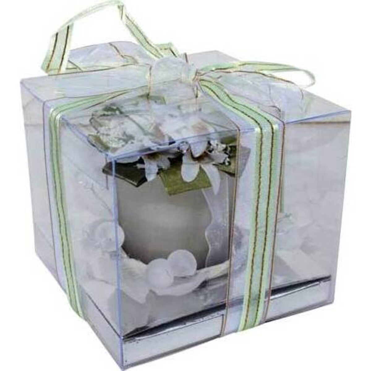 This White Flower Ring Votive from Lavida is just what you need in your home. The white candle comes in a frosted glass, and is topped off with green ribbon and a floral design. Forming a ring around the base of the candle is a collection of white ribbons and small white baubles. All of it comes packaged in a clear box with a silver bottom and a striped ribbon wrapped around. While it's lovely for every day use, they would also make an excellent gift for a loved one and can even be given out as wedding favours.
