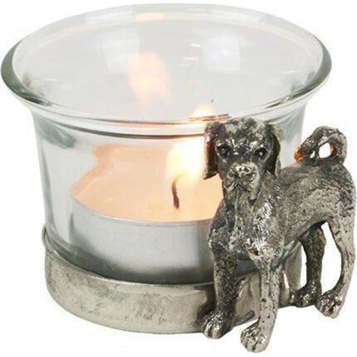 Tiny lighting accents can make a world of difference to the way your interiors can look and when you add votives as acutely well designed with tiny little creatures guarding t well - you could not have done better. While in the evening the light will shine through the tiny glass votive, the dog's features too will be highlighted. When not lit, the votive remains looking like a decor piece with the gorgeous metal crafted dog continuing to amass more love for its adorable look. Place it on your bedside, the coffee table, the book shelf and let its twinkling light warm your cozy spaces. Add incense candles and make the air more romantic. Barely 5 cm in height the votive made of glass and metal is easy to clean as the glass roundel that protects the flame could be removed and the base made of metal, cleaned up easily. The dog is attached to the metal frame and has features that will seal your love for this piece instantly. The votive is about 7 cm in its width.