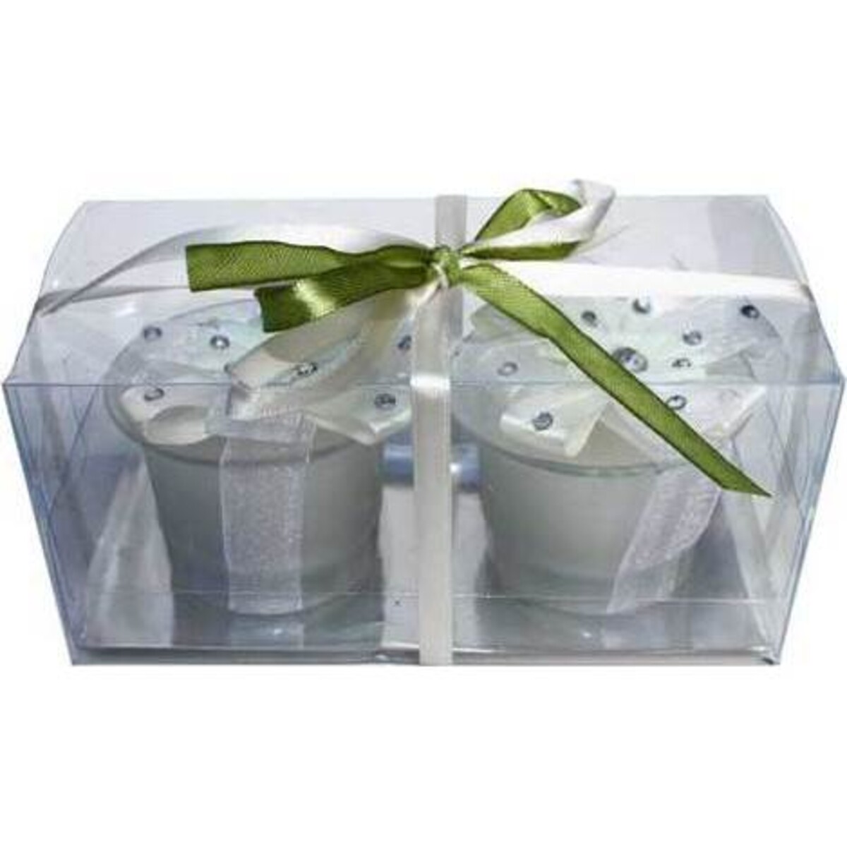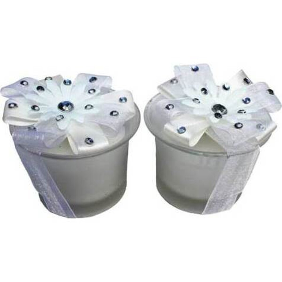 Each white votive comes in a frosted glass, and is topped off by an exquisitely formed white ribbon that resembles a large flower. As if that wasn't enough beauty, flat back crystal rhinestones were added for a little dose of shimmer and shine. There are two votives in each set, and while they are great for every day use, they would also be fantastic to use for special occasions, romantic dinners, and even to give away as party or wedding favours. They're so beautiful and versatile, you'll look for any excuse to use them.