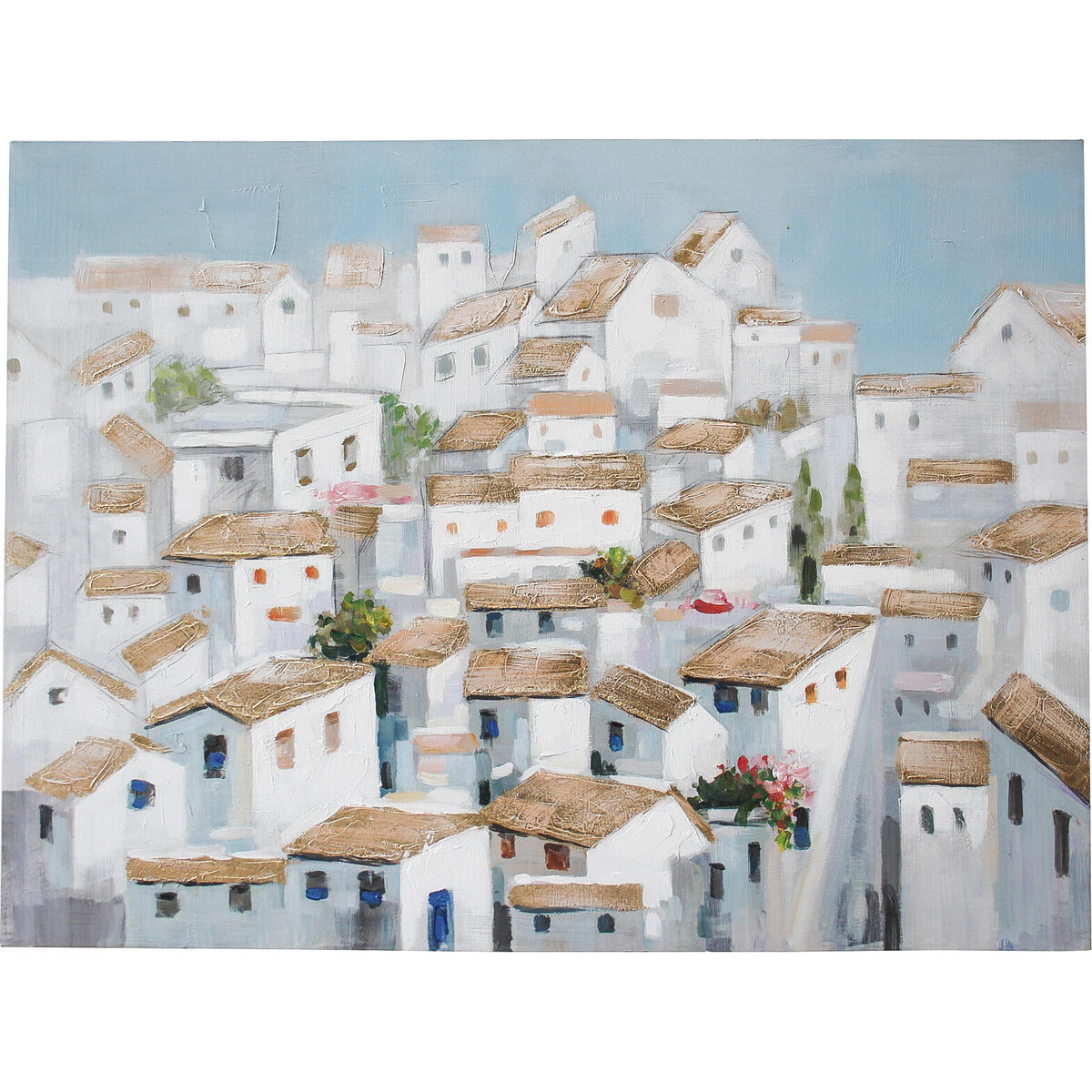 Give your walls something to be happy about - after wall covers them better then art work that spell class and a rural vintage kind of appeal. Here is one that has been created on canvas and shows a simple portrayal of white coloured houses in profusion with their brown roofs - adding to a feeling of expanse and size to the space. the canvas is 120 cm in length and 100 cm in height thus making it compatible with large to medium walls. Given pine made frame, it gives it a fine kind of finish thus ready to be placed on the wall. The subtle usage of shades of white and a touch of earthy brown makes it add that much needed warmth of hues and at the same time the whites lend that serenity that busy spaces lack. Will help enhance the elegance of the space fitting perfectly behind couches, sideboards and the likes. Add that soft yet vibrant touch of coastal colours that will liven up the space adequately.