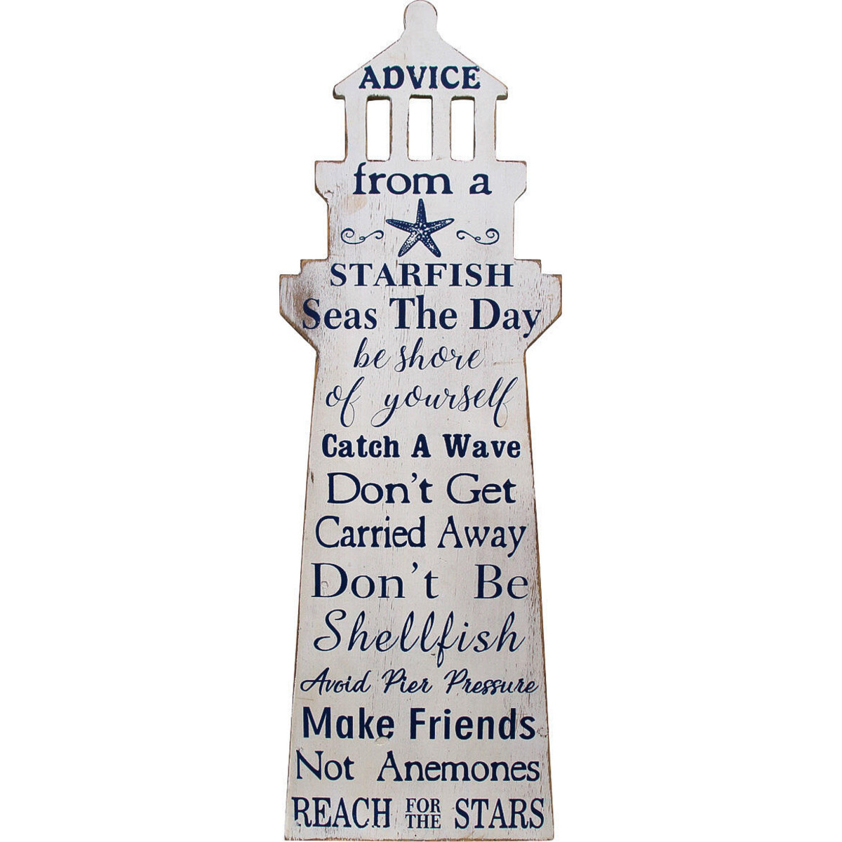 Made to impress as much with its unique kind of lighthouse shape as with its idea of having some real pearls of wisdom making up its face-this simple creation is a wonderful means to build in a marine theme with a classic set of ideas that impacts our lives, every day, every minute. Delight the walls with the lighthouse made from wood, that has been given a distressed shabby chic look making the space liven as much with its ruggedness as with its antique feel. The very height of this piece is 70 cm, making it large and impressive in its presence on any wall space. The tall wall accent will instantly connect with the rest of your marine look home, the colour faded and yet each word printed on kits wood made face, a true gem of advice. The all smart Advise from a Starfish is soon going to be the central most attractive star of the marine runway attracting attention as much for its beautiful shape as for the wisdom that makes so much sense.