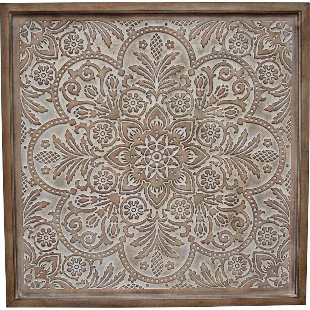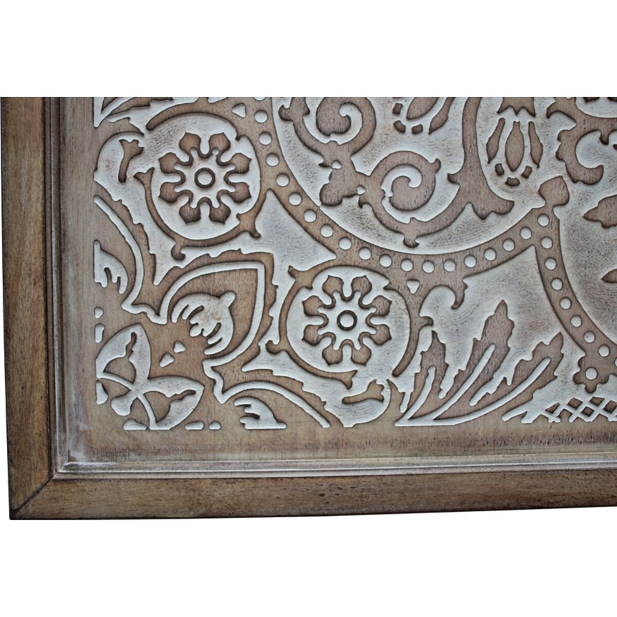 The very look of the mandala design in itself spells out the Buddhist philosophy of life - where our each breath, deed and moment is governed by the instinctive dependence on everything that makes up this universe - and so we are part of the whole and the whole is our part and thus this connects with the mandala that governs our life itself. Bringing thus the universe subsumed within this chakra is this gorgeous plaque washed in white to highlight further the beauty of its gorgeous carving so effortlessly blending into the wood. The lightwood plaque is a large and very elegant kind of presence for any wall and shall impress the surroundings with its classic kind f presence. Will combine as wonderfully with wooden furniture in the space as it will with cane and rattan. The size at 80 cm in dimension makes it just the focal point in any room. Place wit where you wish to add that touch of art and certain attention - grabbing presence to give your entre d?©cor a focal point - like an eastern d?©cor or one based on mystique of the east. The mandala by its very nature will lend your space that centrality. Great along long passageways, behind the main sofa or the carved sideboard.