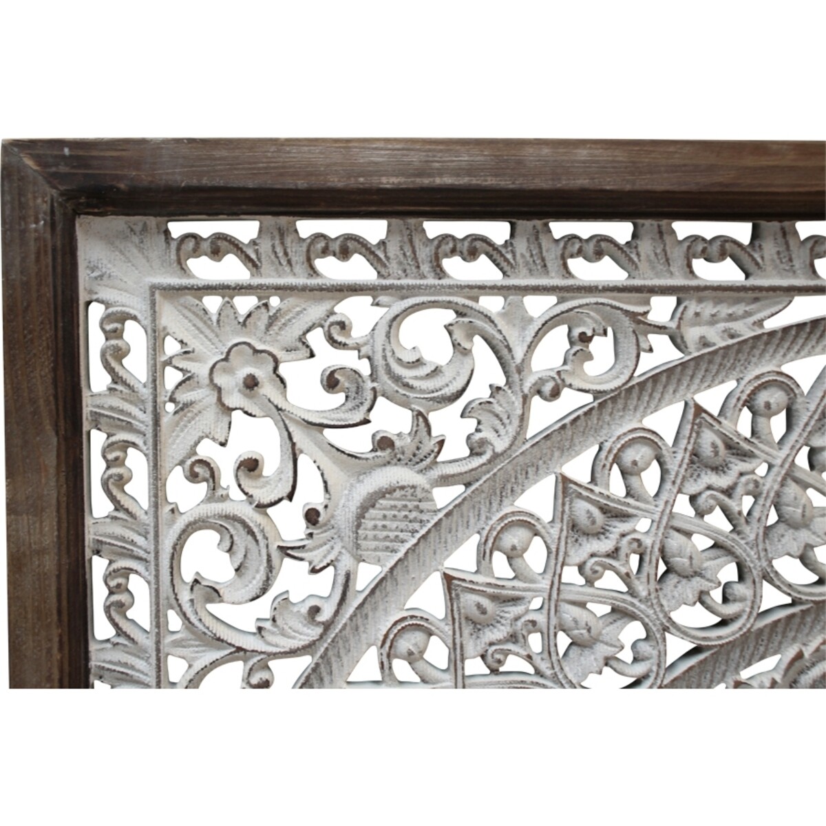 Add a touch of artful symbolism in your interiors and bring it alive and more aligned to things spiritual. Awaken the aura that spaces inherently have with a serene mandala pattern made from wood that is on offer from Lavida. Intricately carved and niched just for your easy installation on the wall, this is a simple means to give your living room a formal flair albeit the far eastern way. The square plaque is large enough to hold centre stage on a large sized wall and would thus be the perfect means to make the space come alive in the most ethnic of ways, intriguing the mind and giving the eyes the most peaceful visual. The wood made artwork is expertly crafted with filigree style carving in soft grey and the frame is in natural wood colour adding to the already present attractiveness. Would especially look stunning above the main couch or the main hallway wall. Add a rug that is soft in colour and some candle stand and a tiny bonsai to complete its setting.