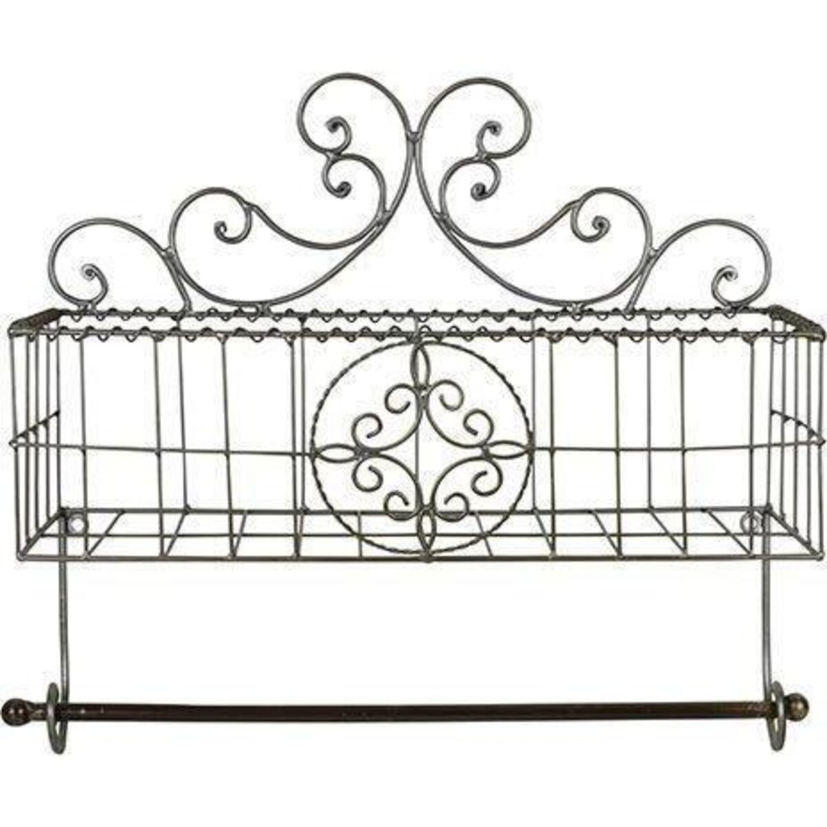 The wall is a large space of your interiors that must be used as much for décor purpose as for organizing and yet not make the place look too overburdened with stuff. Here is an elegantly designed basket with rather detailed wired design that is truly well embellished. The scroll design that goes on top of the organizer straddles the wall and makes quite an attractive statement with its design. The basket is deep with the ability to hold potted plants, bottles, cutlery, glasses and the likes. If used in the bathroom, there could be several things that could be placed there. While the rail at the base could be used for towels and dish wash cloth, or even napkins. The front of the basket sports a lovely design that showcases the best in metal craftsmanship. The burnished colour of the metal frame is also one of its loveliest features. The wall bracket sis all of 36 cm in height with a length of 44 cm and the depth of its baskets is 15 cm, making it quite a presence on the wall. Its gorgeous detailing will make an artistic splash on the wall while ensuring that your spaces look better organized and more artful in its décor style.