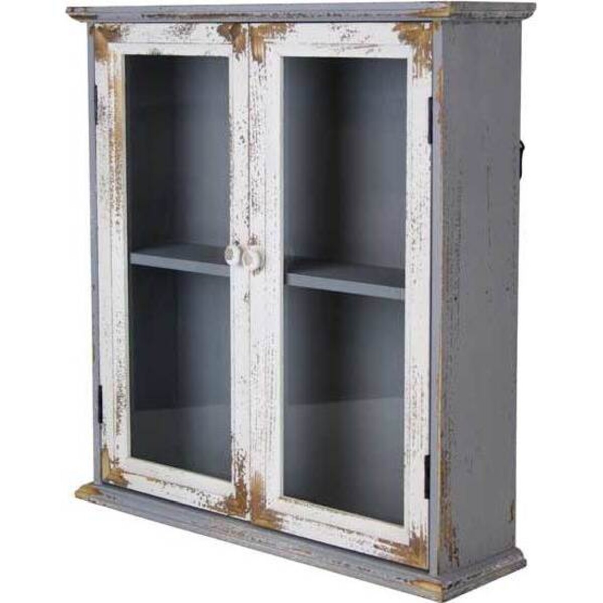 The product Wall Cabinet Vintage Cream features a cabinet designed in traditional Vintage style. It has two doors, opened using two knobs which lie next to each other when the doors close. The door - frames are cream in colour and the cabinet is divided into two upper and bottom sections which buyers can utilize for keeping an assorted range of things. This cabinet has measurements of 45x13x48 cm and may as well be applied within a library, study room, office or other setting to afford users convenient access of various stored items. Its traditional - looking face can fit well into a vintage - styled surrounding.