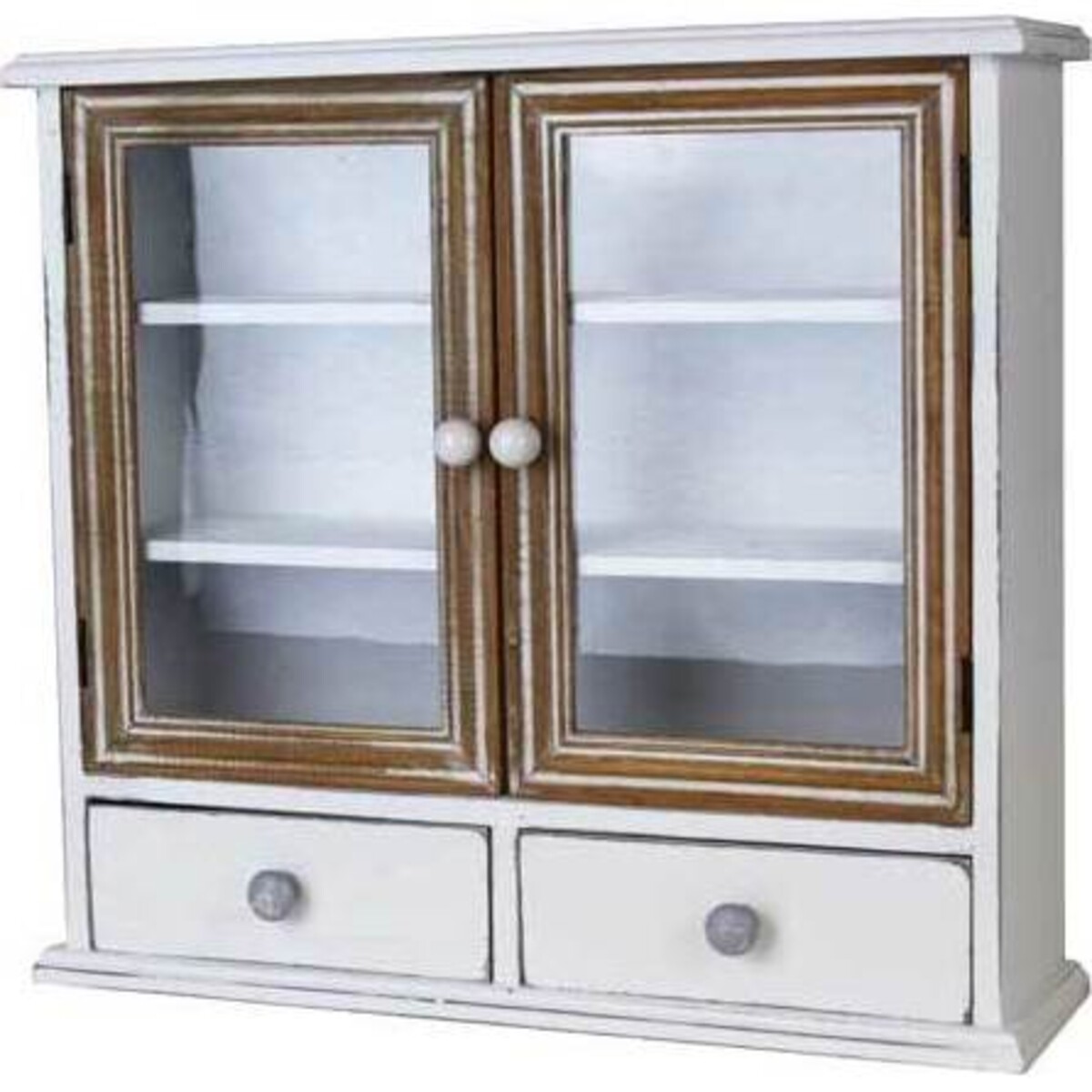 Wall Cabinet Washed White Double affords homeowners the pleasure of having an outstanding storage unit within their kitchens. It measures 47x13x43 cm and features a double cabinet with two drawers directly below its two adjacent doors that are inlaid with glass. The brown vanish utilized on the wooden door - frames stands out in classy style, with the white knobs utilized offering brilliant contrast with the overall wooden construction employed for the rest of the cabinet. Different settings can appreciate the universal tones utilized on Wall Cabinet Washed White Double. The brilliant white colour it portrays especially gives it a one - of - a - kind and classy appearance.