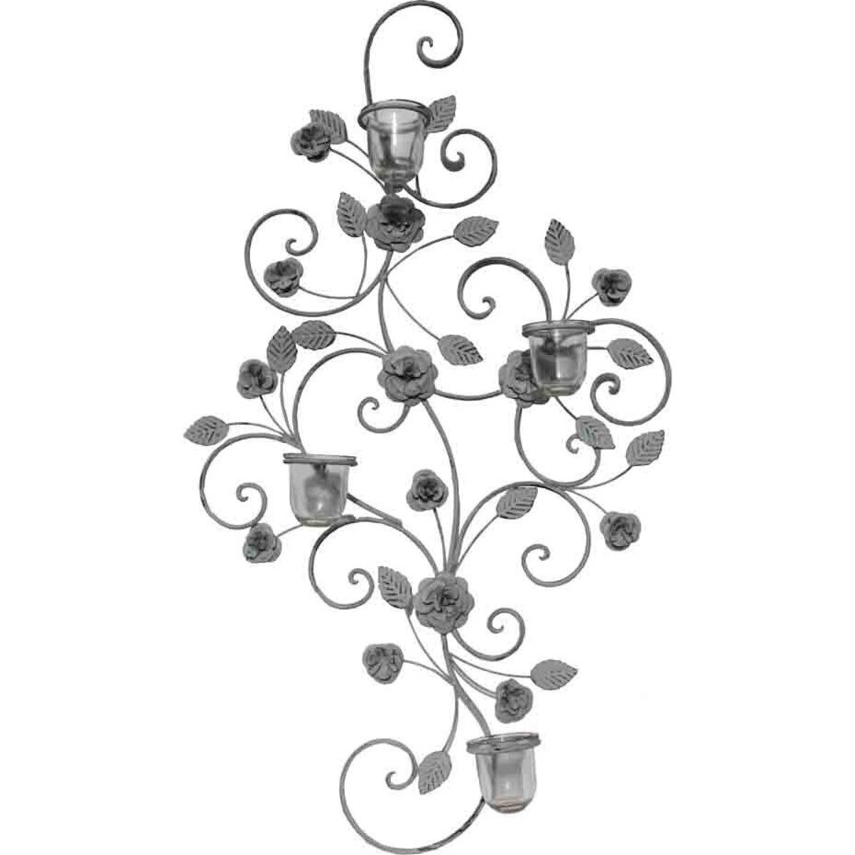 The Wall Candleholder - Hoja Rose is an utterly beautiful piece, a creation of art, made of twirled pieces of iron rods, fashioned metal pieces and clear glass cups. This makes for an interesting and classically designed candleholder.