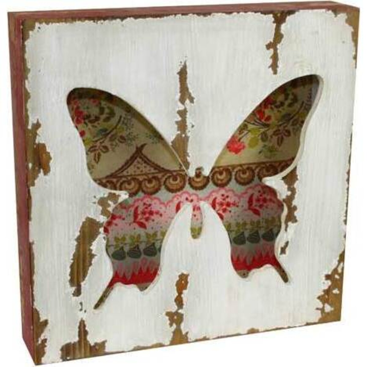 This wooden piece of wall decor comes with an antique look and a butterfly pattern cut into its body. This is the bit that sets it apart from other butterfly themed pieces of decorations. Its creative cut pattern has a base of colourful designs that make the piece stand out and add a pop to all walls, no matter their colour. This piece is definitely going to attract a lot of attention for those looking for a unique gift or just a special something to add to their own walls. This piece is also quite thick, and will protrude from the wall is another unique feature - it also makes the decor look more sturdy and strong.