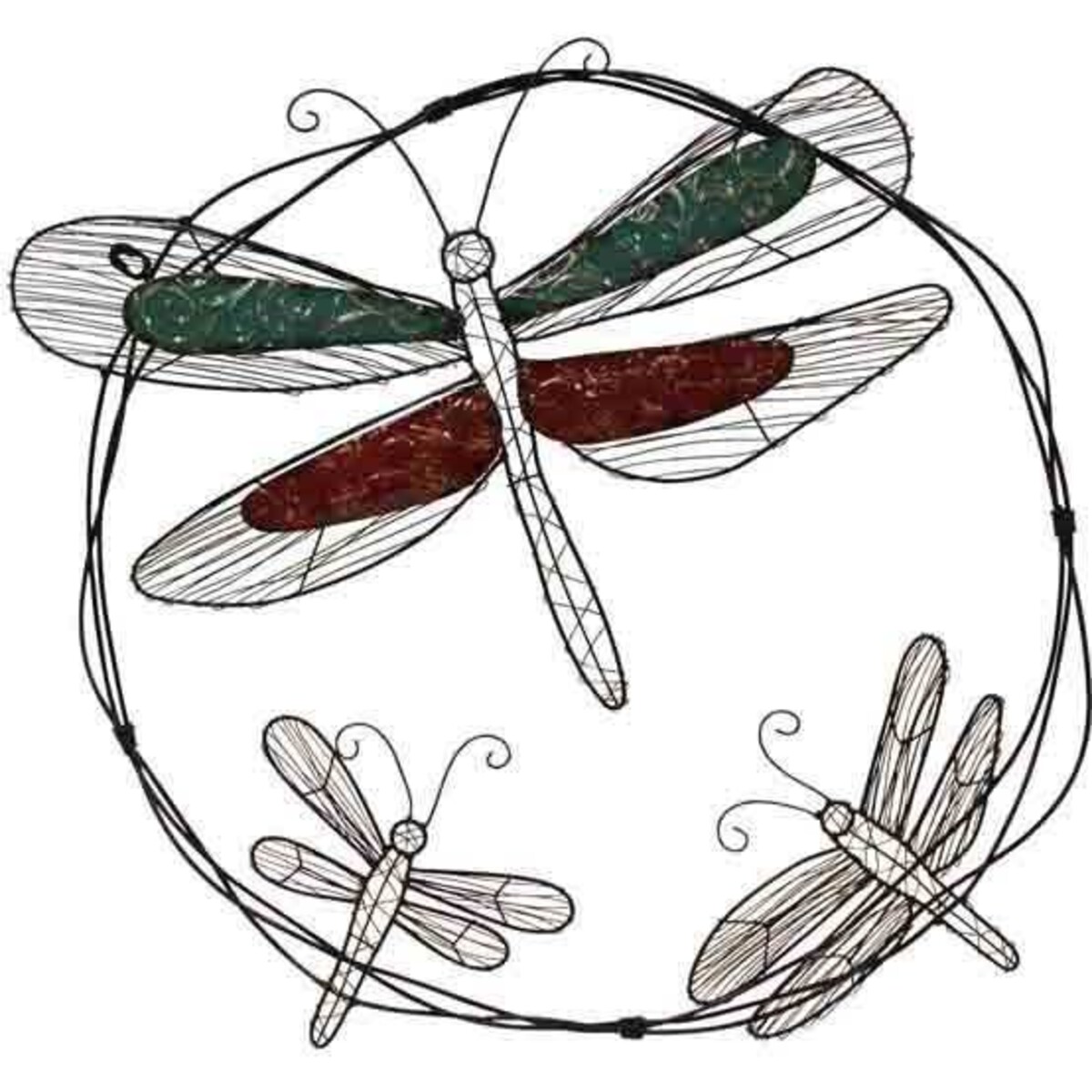 The wall plaque decorative is three times eye catching and aesthetically boosting for any venues. It could spruce up rooms and places from homes, offices to even contemporary themed business centers like boutiques and shops. For making someone's day extra special, this accessory is also a remarkable gift item. Wall Décor Circulo Dragonfly signifies artistic and creative ways of accessorizing venues. It is a showpiece which is perfect for venues with nature inspired interior concepts. It matches other decorative especially those with floral or outdoorsy accents. The wall plaque is artily crafted from quality wire and metal materials with a little blend of durable plastic. One big dragonfly is highlighted at the center of the circled wire. It has dark green and dark red accents for the wings. Two other smaller dragonflies complete the décor.