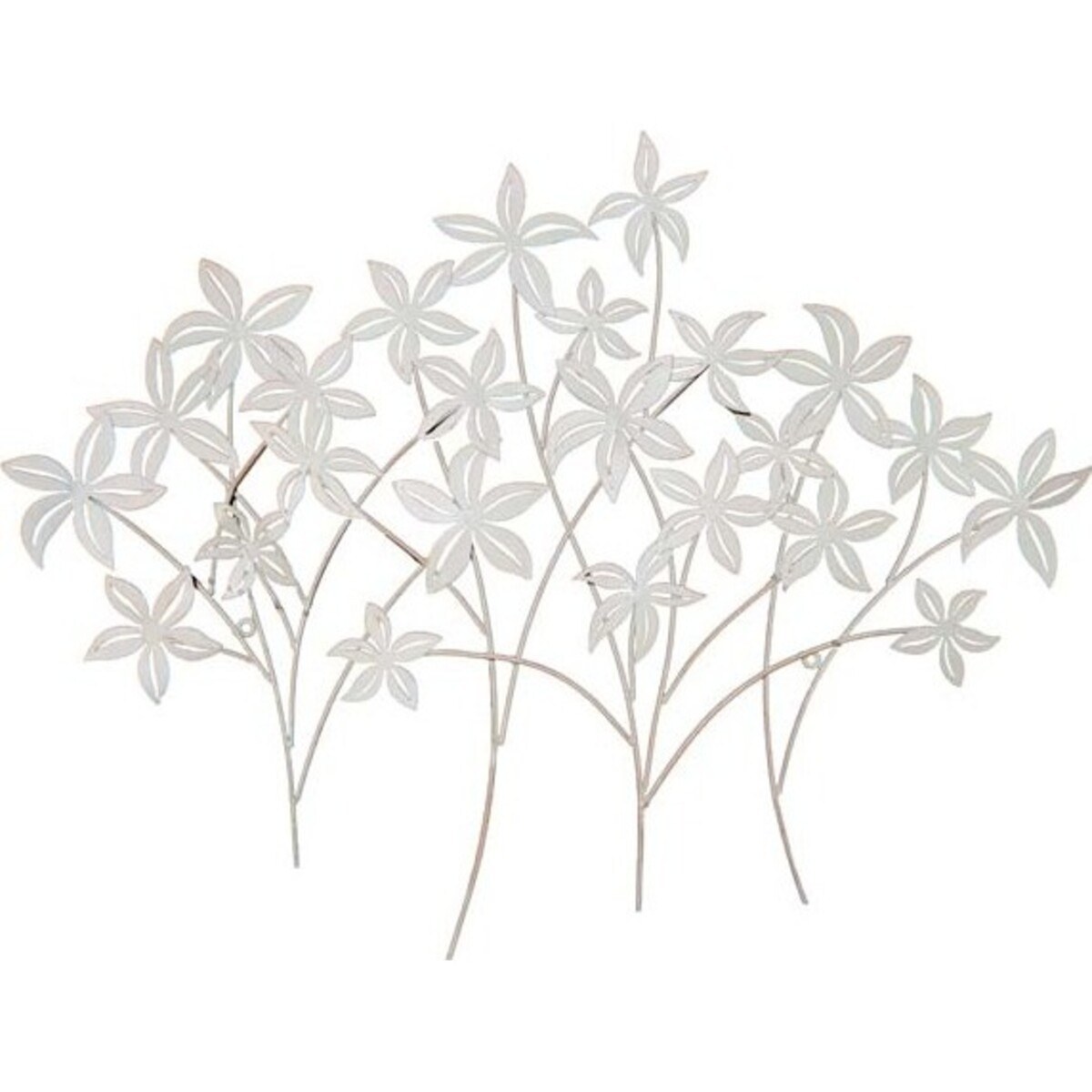 This ornament features four slender twigs, each branching out into several more stems. Small white flowers, which are very much like the Apache plumes with five petals in a bloom, are attached to certain parts of the stem. The gaping incision in each of the petal is an added design element making the bunch of flowers more striking. The whole wall décor painted in an immaculate white shade.
