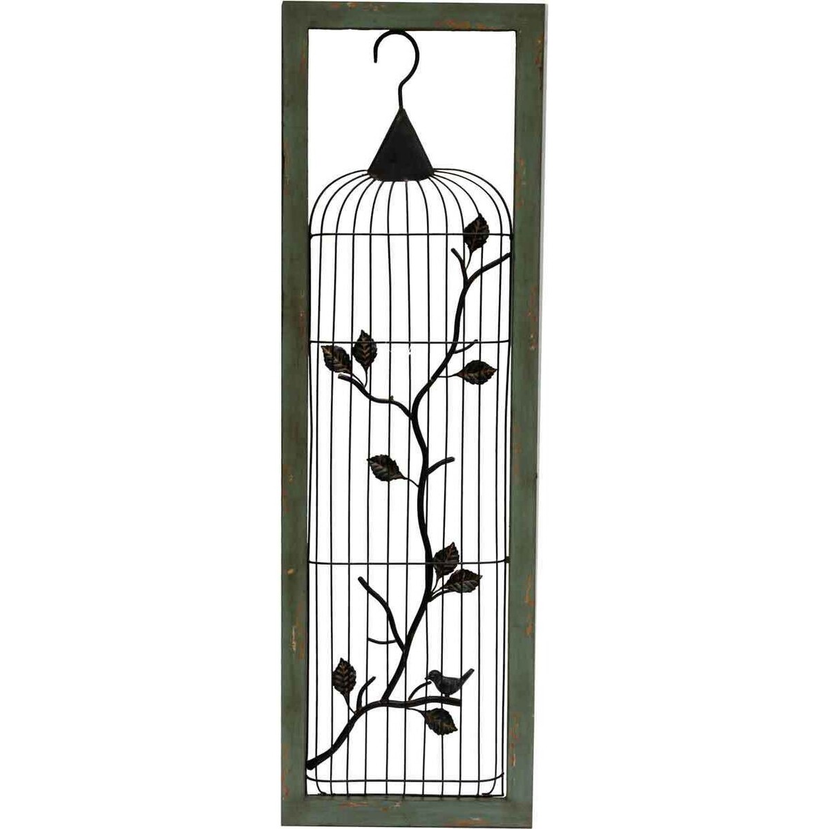 The Wall Décor - Rectangular Birdcage is exactly the same as the name implies. It is a long, rectangular frame made of wood with a form and figure of a tall birdcage fashioned from thin metal rods inside it.