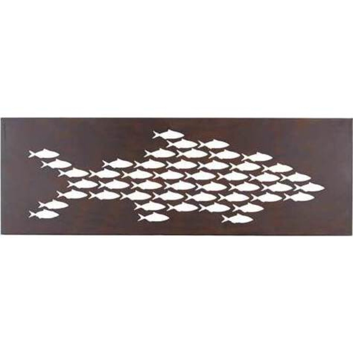 A school of fish is not just lovely but one filled with great vibrancy and energy, and this wall plaque quietly captures the same in its design. The size is about 90 cm across in width helping it sit across large empty walls giving it a charming look. The backdrop is that of rust metal finish on which are the numerous fish which swim together taking the shape of a larger fish. This wall decor idea takes its inspiration from the natural habit of smaller fish that sense danger and create this camouflage for itself against larger predators. A stunning effect which is visually a treat and will help make the dullest of walls look dramatically different. A perfect match with nautical or seaside themes, its colour will blend in well with tropical, beachside or more bohemian look decors as well. May be placed on moderately larger walls or in spaces that need some liveliness infused into it which symbols of natural beauty can quite easily do.