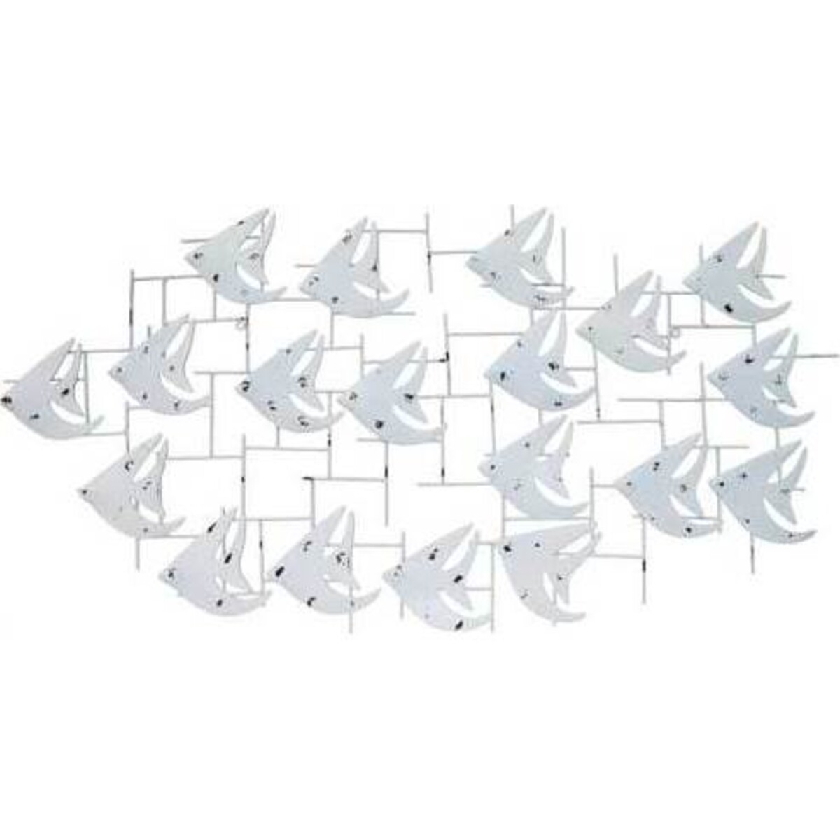 • Nineteen angelfish are attached to a latticework grid that has an open airy feeling so it leaves the viewer with a sense of the lightness of fish gliding through water.