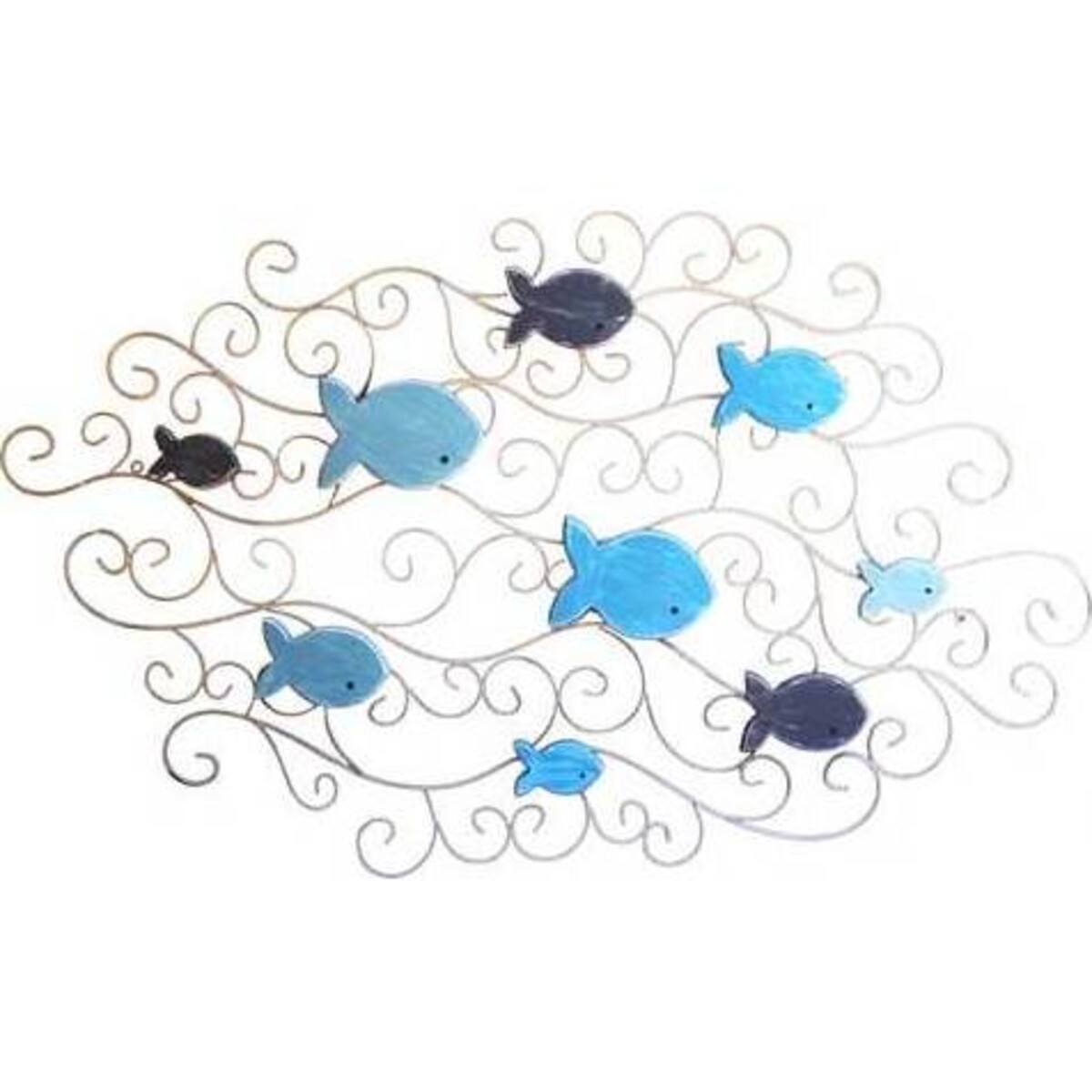 A school of blue fish swims across swirling waves in this Wall Decor Blue Fish School from LaVida. Nine fish in various sizes swim together on a background of scrolling metal designed to mimic the waves of the ocean. The fish are rendered in watery shades of navy, turquoise and powder blue for a pop of sea colours. This metal wall accent measures 100 centimetres across and 62 centimetres tall, creating true visual impact on a wall. Near the coast or just inspired by it, this wall decor piece would make a fitting addition to any nautical - themed room or home.