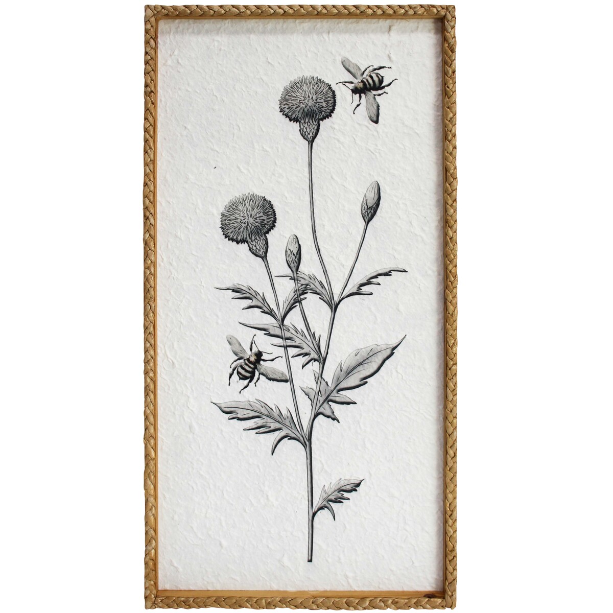 Wall Decor Botanical features intricate details with a subtle monochromatic tone. This piece has a realistic feel with a wooden frame and a braided design to complete the look. Perfectly ornamental and aesthetically appealing, this piece has a fresh style. Designed to stand out in a range of spaces including the living room, bedroom or even office spaces. Wall Decor Botanical expresses an alluring serene ambience that captures the beauty of nature. One can see bees buzzing around the flowers to give them a realistic vibe. The subtle design makes it perfect to be mixed and matched with other wall decor to create a breathtaking view.