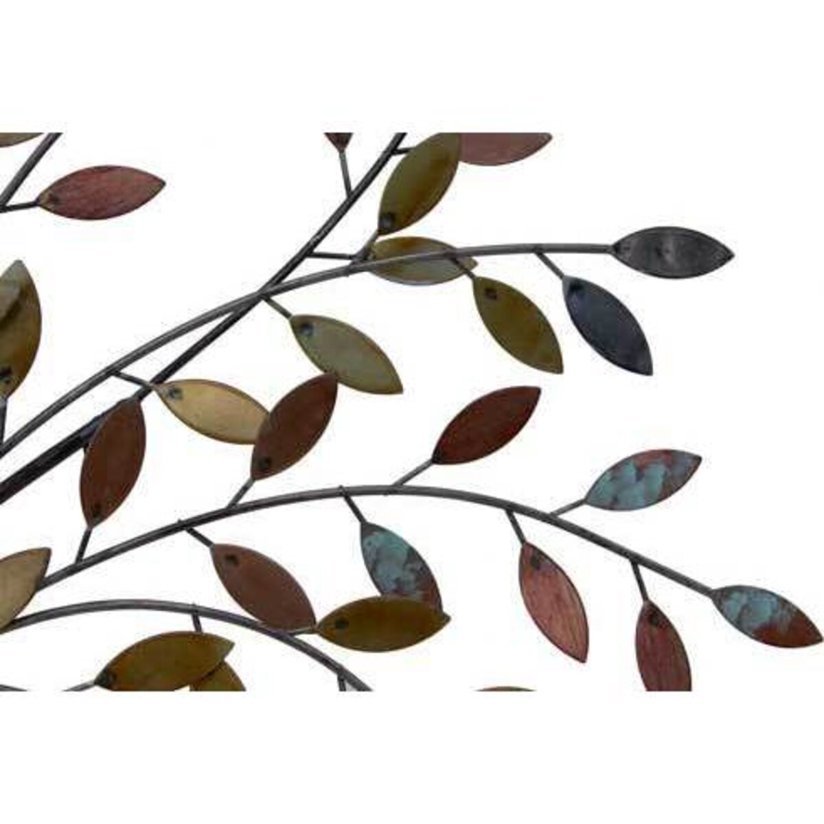 This decorative accent features several dark branches that are intertwined at the base only to become free at the middle and go their own way, each one with a variety of multi-coloured muted leaves in shades of brown, green, and gray. While this piece is lovely to hang on the wall of your home, especially in the living room, bathroom, or bedroom, it's also ideal to hang on the front or back porch to complement the natural surroundings. You'll wonder how you ever did without it.