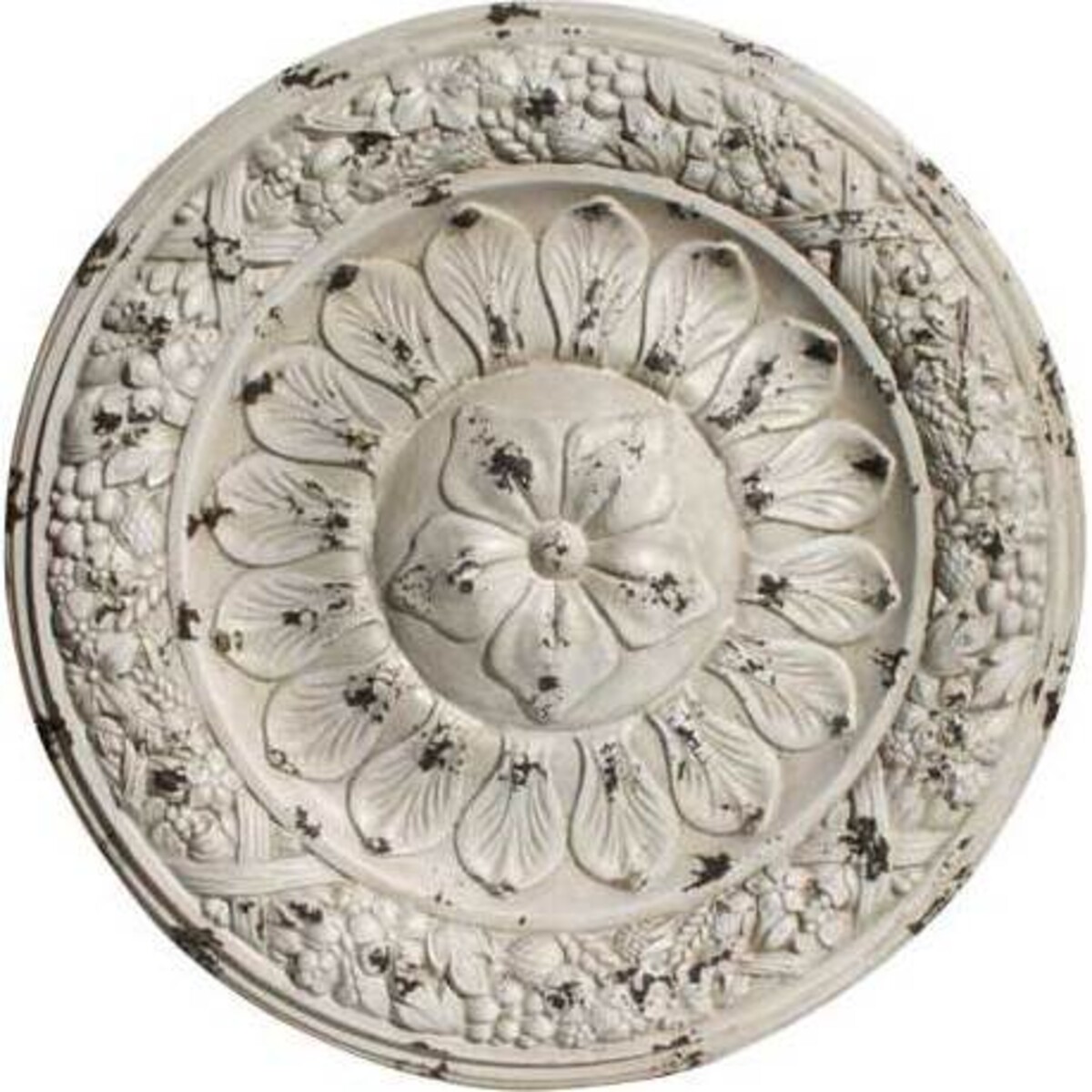 This gorgeous stone coloured decorative accent features a compact floral border along the edges as well as a single flower at the center and petal detailing in between. The entire piece is slightly worn with a dark brown contrast to give it the illusion of wear and weathering, as if it was plucked right off the shelves of an antique store. This artwork may look old and expensive, but anyone who sees it will never know the difference, and will surely offer up plenty of compliments. Don't worry, we'll keep your secret.