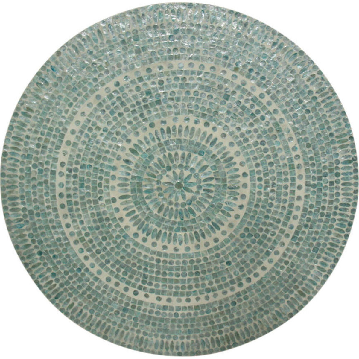 Make a difference to your wall spaces with this round 90 cm dimeter wall art that has been created just like a mosaic with tiny pieces of tile in soft blue colour. Will look especially appealing when placed behind couches, on the wall close to the dining table or a space that needs to be given a certain kind of centring and looks way too spread out. Round articles always bring together the outer ring of articles and makes the space feel more cohesive. The soft blue colour-the uniqueness of the mosaic art in single colour-adds to its beauty. While its modern ad contemporary in its appeal-it will look as stunning in spaces that have a more traditional setting. The mosaic has a thickness of a mere 2 cm thus making it not too bulky to be hung. A simple wipe with a cloth and the mosaic will begin to glow anew. The intricate pattern created on the round plaque makes it look truly ornate and yet chic enough to be called modern.