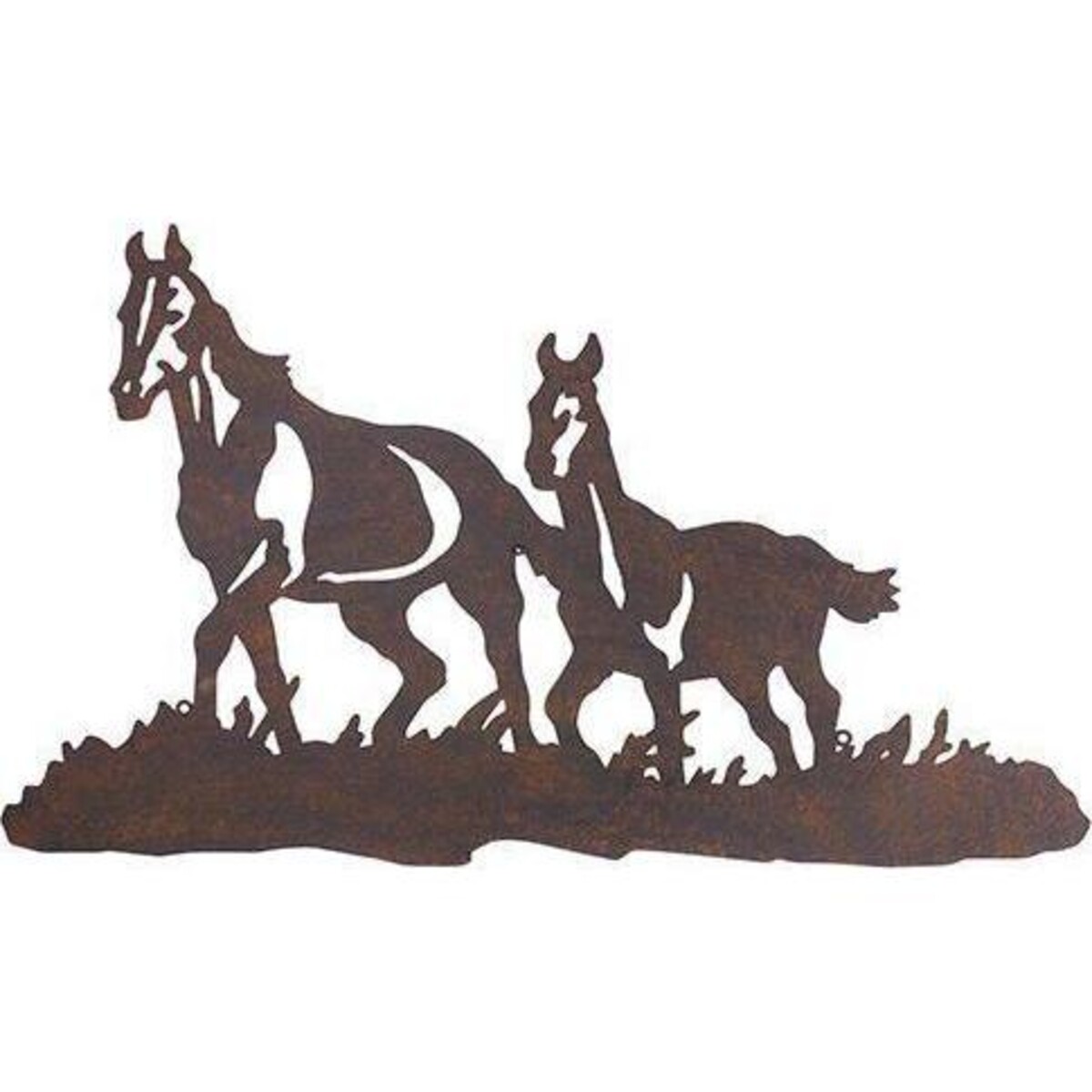 A wall art piece that combines the rugged mystique of two horses on their wild and free time in the meadows. The metal crafted ice will adorn the wall with its fine cut and create the most handsome of features that symbolizes the steed. The detailing of its futures created with such acute sense of exactness also makes it a one of a kind piece on offer from the wall art range of Lavida. Expert metal craft has been applied to create this image of such perfection. The fine cut lines, to the extent of cutting the metal with such finesse is what makes this such an amazing piece of display for your walls. Would create an impression not just with it beauty but also the artistry. The wall plaque could be placed in your equestrian theme room or at the bar and is sure to make quite an impression with its rustic and rugged kind of look. The size too makes it perfect for small little seating areas that you may want to do up in a country feel or the Wild West theme. About 58 cm high and 40 cm in length, the horses in the piece are placed one behind the other and the use of dimensionality gives it a sense of depth.