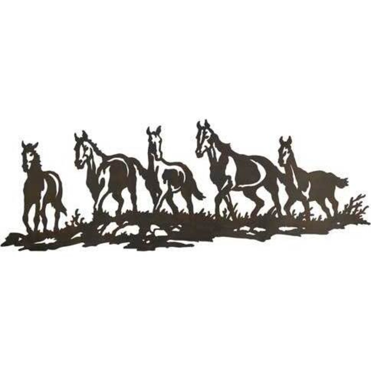 Introducing the Wall Decor Horse Range - a stunning centerpiece that promises to captivate and charm buyers looking for a touch of rustic elegance in their homes or offices. Crafted with incredible artistry, this exquisite metal silhouette showcases a procession of majestic horses, capturing their wild spirit and grace. With its generous dimensions of 100x35H cm, this piece strikes a perfect visual balance on any ample wall space it adorns.