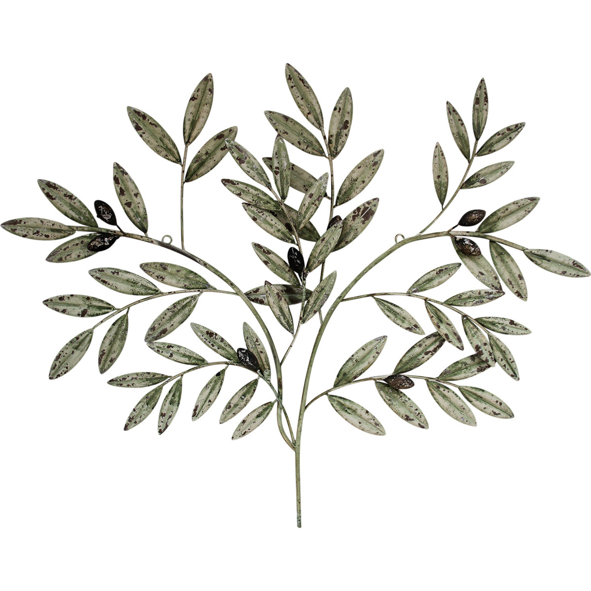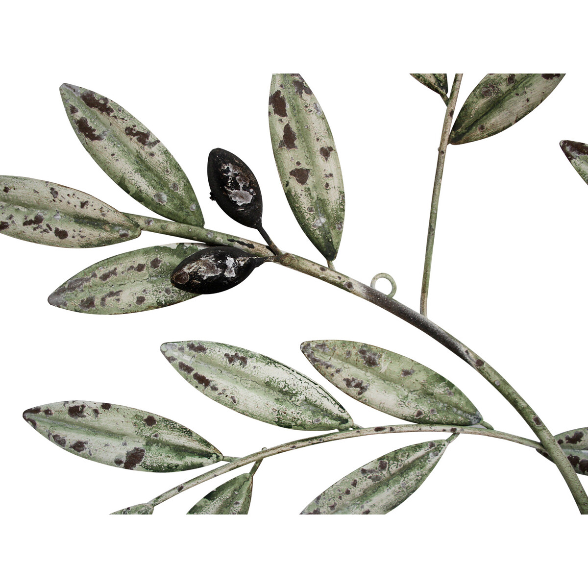 The entire wall piece has been crafted from metal in a metallic kind of colour. The multiple fronds of leaves stem from the single olive branch that shows off the lushness of the leaves to its best. Crafted from metal that has been left looking its most natural of shaded. The branch shows off not just its many leaves that have all been delicately crafted from metal also the stems that lean over as if heavy with the dense leafing. Will look stunning when placed on the wall and will help build in a certain kind of modern and contemporary flair in the space which happens in case of articles made from metal. The height of the wall décor is 84 cm while its width is 70 cm.