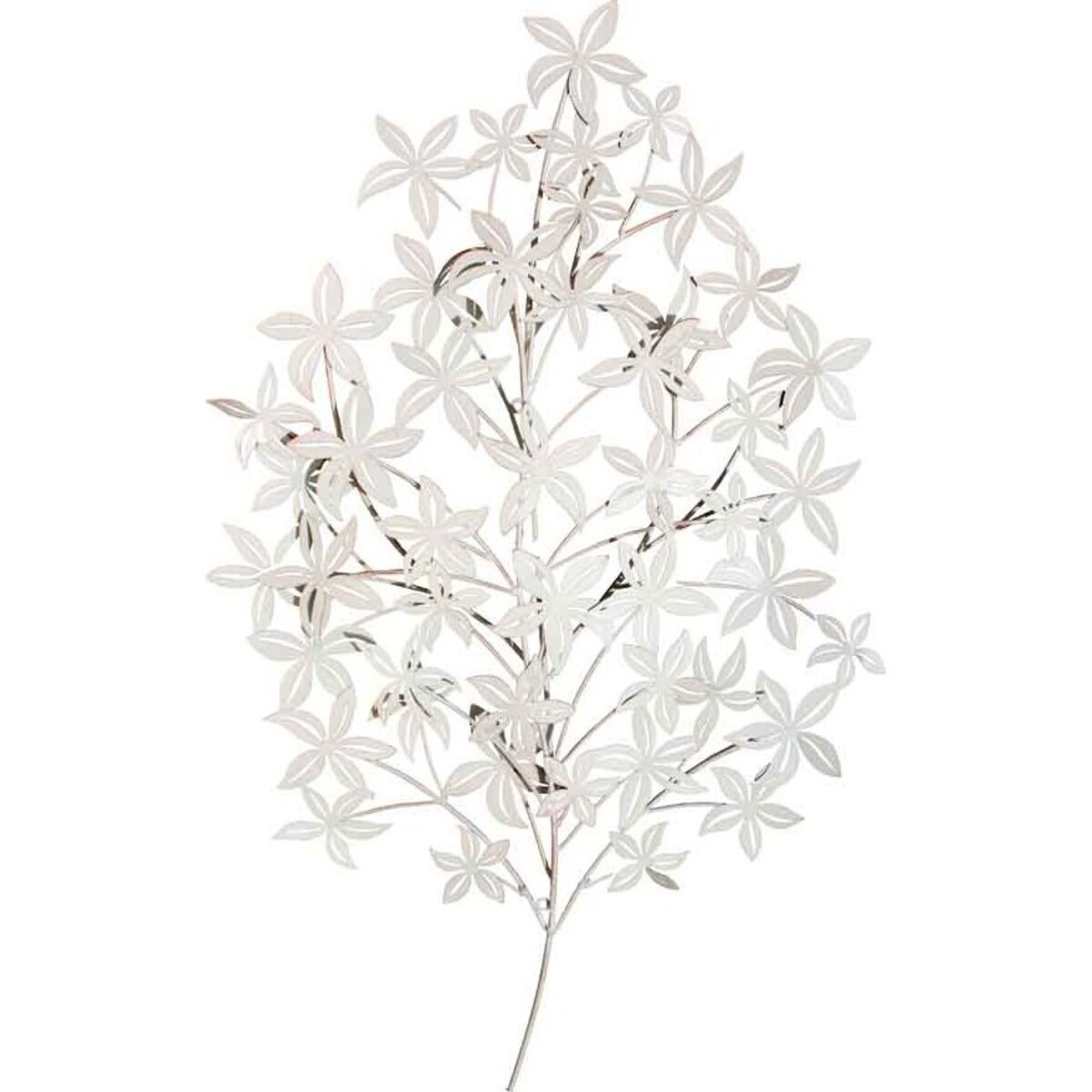 The Wall Décor - Ramo Round Cream is a striking addition to a plain wall, giving it an extraordinarily beautiful overall look. This features tiny little flowers very similar to the Apache Plume, a member of the rose family. It has five tapered petals per bloom. The flowers are painted white. There are large ones and smaller flowers, as if it just bloomed. The only difference is that it has slits in the middle, giving it a more interesting detail to a simple flower. Most of the slender branches are also painted white but these are accented with darker stems in black and grey. It is made of very thin but sturdy aluminum-like material. As a pair, the Wall Décor - Ramo Round Cream would be a great accent on the wall, glass doors and even mirrors. It also comes in a darker version: the Wall Décor - Ramo Round Dark.