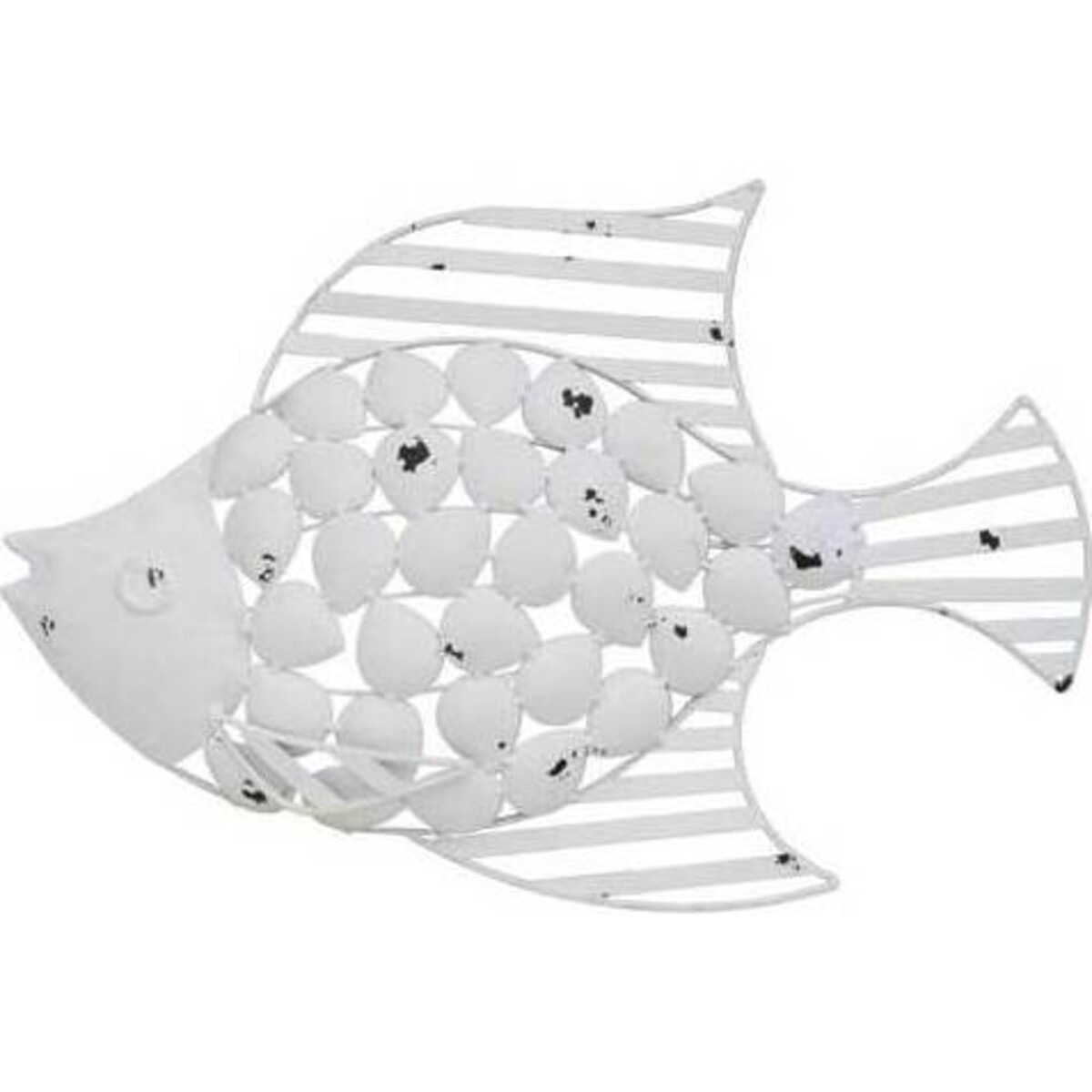 The distress paint does little to hide the wonderful craftsmanship that has created this shape and definition with scarps of metal put together. The welding of the pieces of metal has been done with great finesse and the shape looks amazingly accurate and life like. A superb way to do up the walls that have bright colours on them as this piece will stand out in contrast. It is a light weight metal art piece that should be easy to mount. The details on the fins and the tail are delightfully pretty. The wall art has a contemporary feel yet with a look that can blend into any home that believes in putting together the best in artifacts. The distressed white paint finish gives it a aging weather beaten look perfect for the bar or the outdoors well.