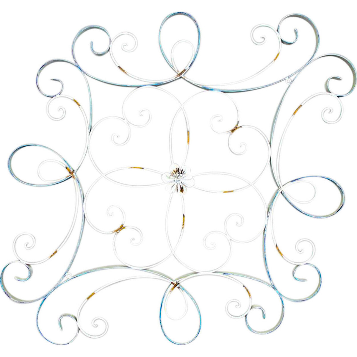 Adding wall accents that bring alive the beauty of a scroll pattern so wonderfully, makes a huge difference to the way your home or space eventually looks. Walls essentially are displays spaces and when used in this manner adorned with patterns that are not exactly tuned to any particular thematic, it makes them part of almost all kinds of settings-could be modern and contemporary to more heritage and vintage feel. The larger wall spaces in fact need something like this scroll pattern so as to utilize the space and yet contribute towards the beauty of the space. This 78 cm tall and 90 cm wide delicate pattern has rust markings making it feel more vintage and classic lending the area a special kind of shabby chicness. You could place it above bedroom headboard, or above the console where you could add more shabby chic elements-or simply use it in the exterior of the house-maybe at your entryway or the patio sit out. There are so many places where such antique look wall adornments could be utilized in the best possible way.