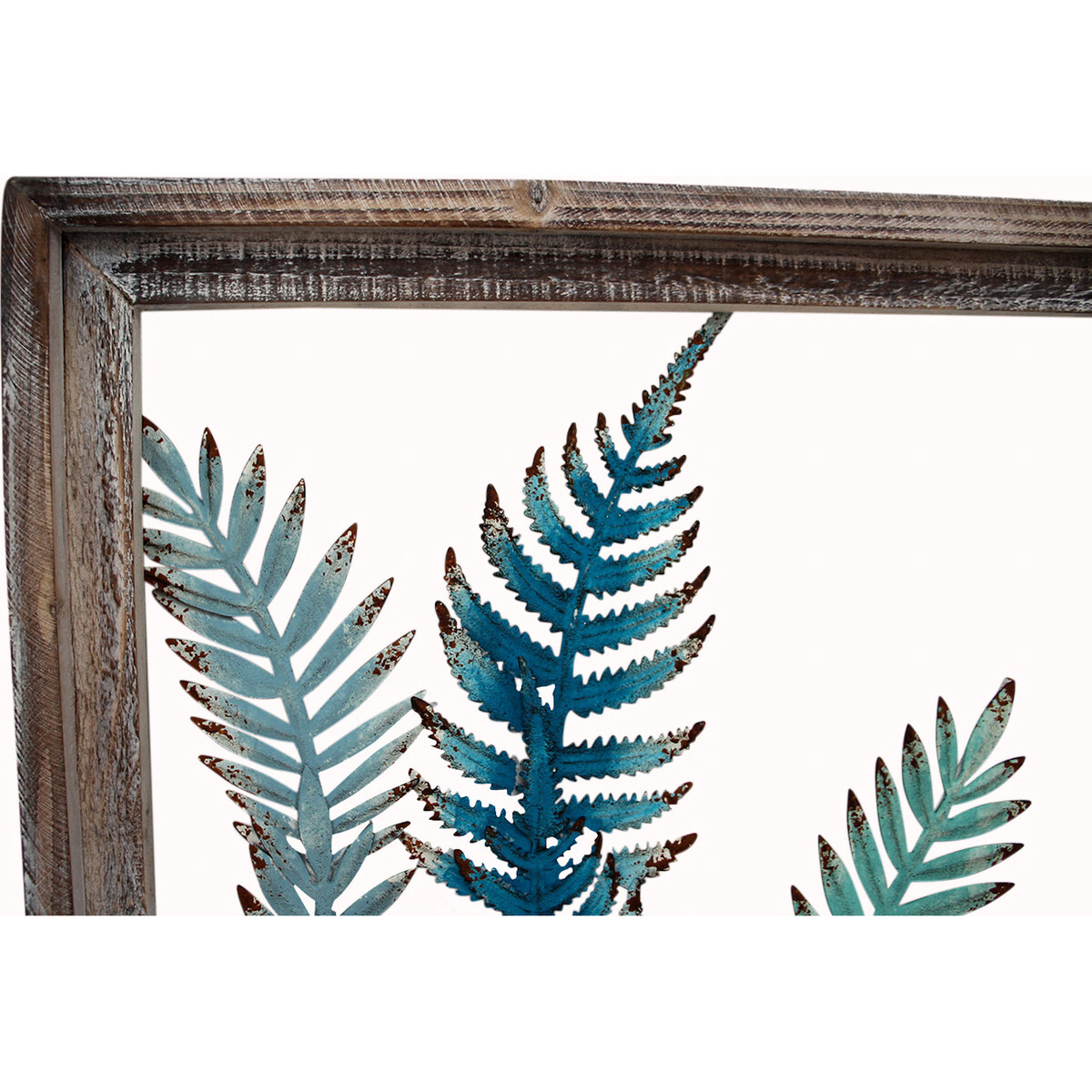 It touches up your space with colour and vibrancy, the fronds of fern rising up from the base of the frame up to a height of almost 98 cm and its width at 42 cm makes it quite a prominent addition to any wall. The metal made ferns look all the more stunning as they d0 not have any backdrop but for the wall - the frame merely used to define their striking shape and design. The rust marking on the metal adds to its shabby chicness and for homes wanting this touch of modernity in them, this would eb wonderful choice. Add this to large wall spaces that need a focal point to help converge or bring together the beauty of their modern décor together. The wood made frame helps build in that natural organic feel and the textured and natural feel of the entire feel makes it refreshingly different from the more ornate options in décor - hence its uniqueness.