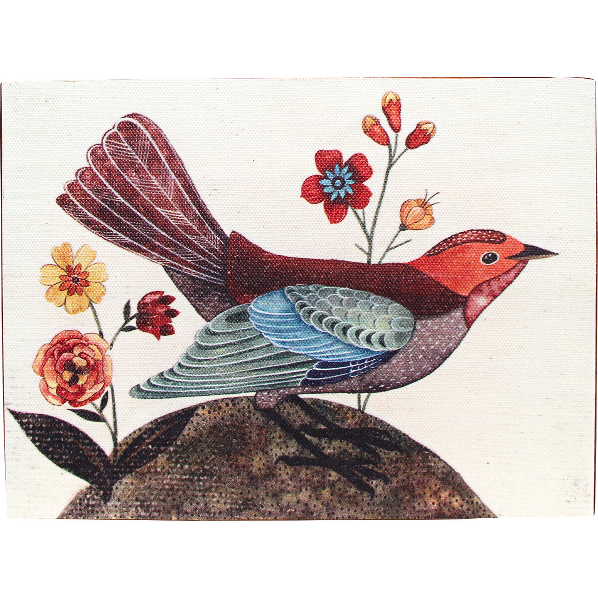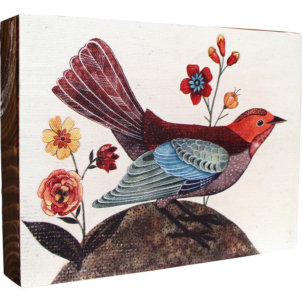 Any picture depicting birds instantly brings forth association of Spring time or summer-which has great deal to do with the introduction of colour and the energy that the creature possesses. This plaque despite being tiny is a beautiful depiction of a single bird whose colourful plumage and unique kind of look on white backdrop makes it look refreshingly different. The 20 cm long plaque has a height of 15 cm and will look especially beautiful when placed in those walls space s and corners spaces that need that special touch of natural beauty to soften the more formal kind of feel. Add some more Spring season look accents like-potted plants, some colours in the furnishings and you would be well on your way to giving this bird its natural setting. The print on MDF shall retain it density and colour depth as its been achieved using sophisticated printing technique. The thickness of the plaque allows it to be propped on shelves and table tops as well.