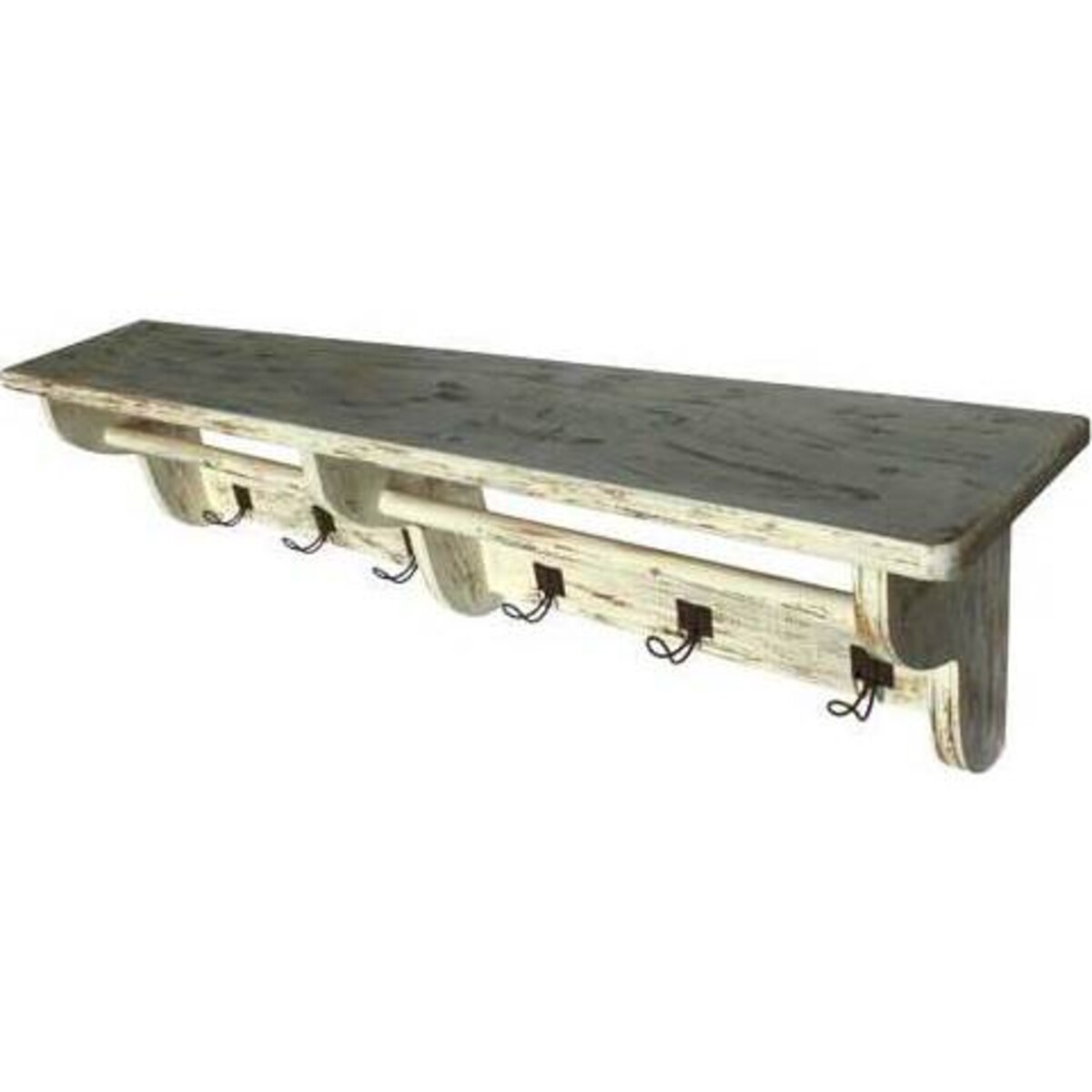 This fabulous piece is so versatile you can put one in your bedroom, one in the living room, another in the kitchen, and even a couple in the closet if you want to keep all your items organized. This beautifully detailed wall rack features a top shelf with a connecting hanging rod underneath followed by six hooks. You can easily put perfumes and beauty items on top, scarves on the rod, and purses on the hooks, or if you use it in the kitchen, spices on the top shelf, towels on the rod, and potholders and oven mitts on the hooks. With shelves these fabulous, the possibilities are endless.