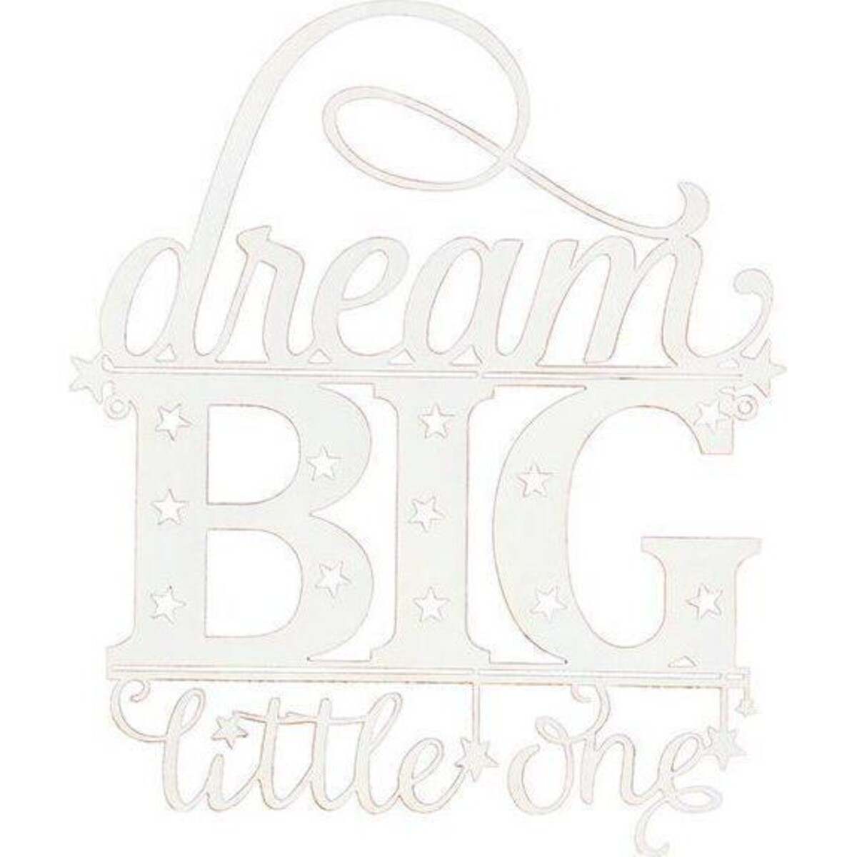 Created with the idea of giving your child the best reason to believe in his or her dream and to fill their days with the right kind of positivity however large the worry or the cloud of doubt may look to them. Such sign boards for the children's room communicate messages that somewhere sink in and become part of their imaginative thought and belief. Its words resonate in their minds and thus it makes sense to place them in children's room. The white metal cut sign board has the words ornately cut out to perfection. The scrawling font has been executed with much perfection. Te message ?Dream Big Little One simply says what comes from the heart and plants it on the wall with such simplicity and makes such a huge impression with its simple presence. Would look especially lovely when the backdrop of the wall is coloured in a deeper richer colour on which the shabby chic white will show better. The wall sign is all of 42 cm in height and 36 cm in width.