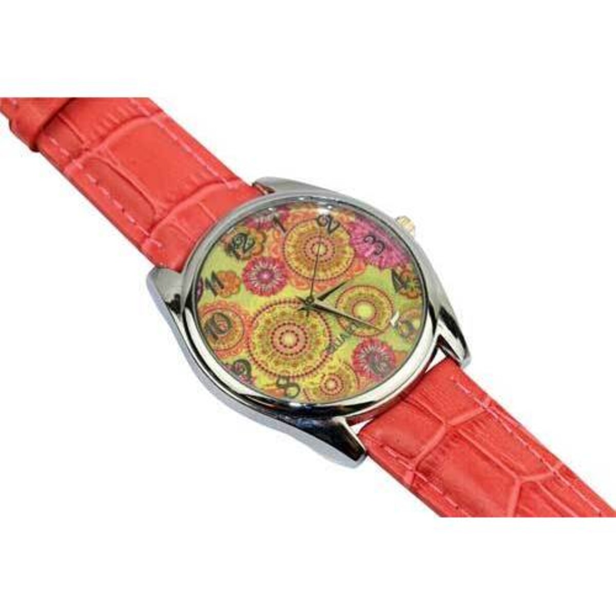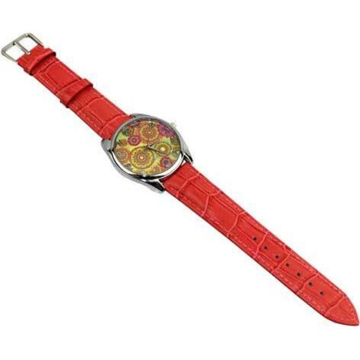 Bringing out your personal style and personality through accessories is a fantastic approach to take. This watch is fairly bold and quite unique to look at. Its red leather wristband is a mix between contemporary and rustic in design. The clock itself has a bright green background with an artistic flare of sophisticated artwork spread throughout. It may take a little bit of time to pair it with clothing apparel? but that's the great part about this watch! It is styled perfectly for someone who is also creative and can utilise it to the best of their abilities.