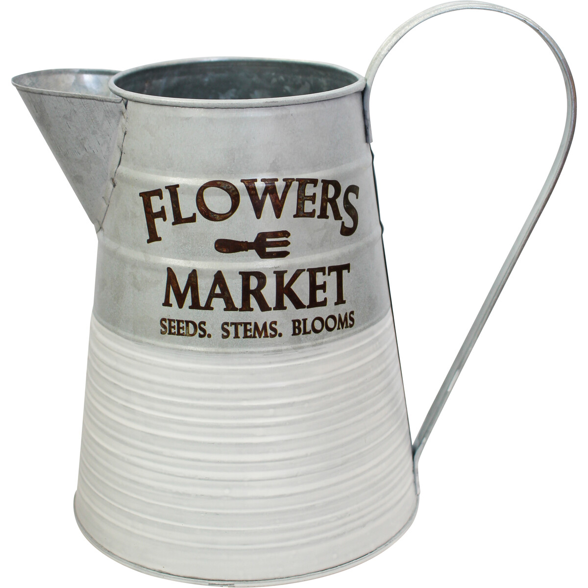 Written on its smooth exterior surface are brown coloured garden themed words written in beautiful, bold, capital letter fonts. The words appear brightly over the ash and white coloured exterior palette. The jug is made in a vertically inclined dimension which measures 26 centimetres in height, 19.5 centimetres in width, and 10.5 centimetres in length. It comes with a stylish, large handle and wide base which progresses upwards into a round, smaller opening. Please note that it is not recommended for use as an actual jug or watering can as it may not be 100% water tight.