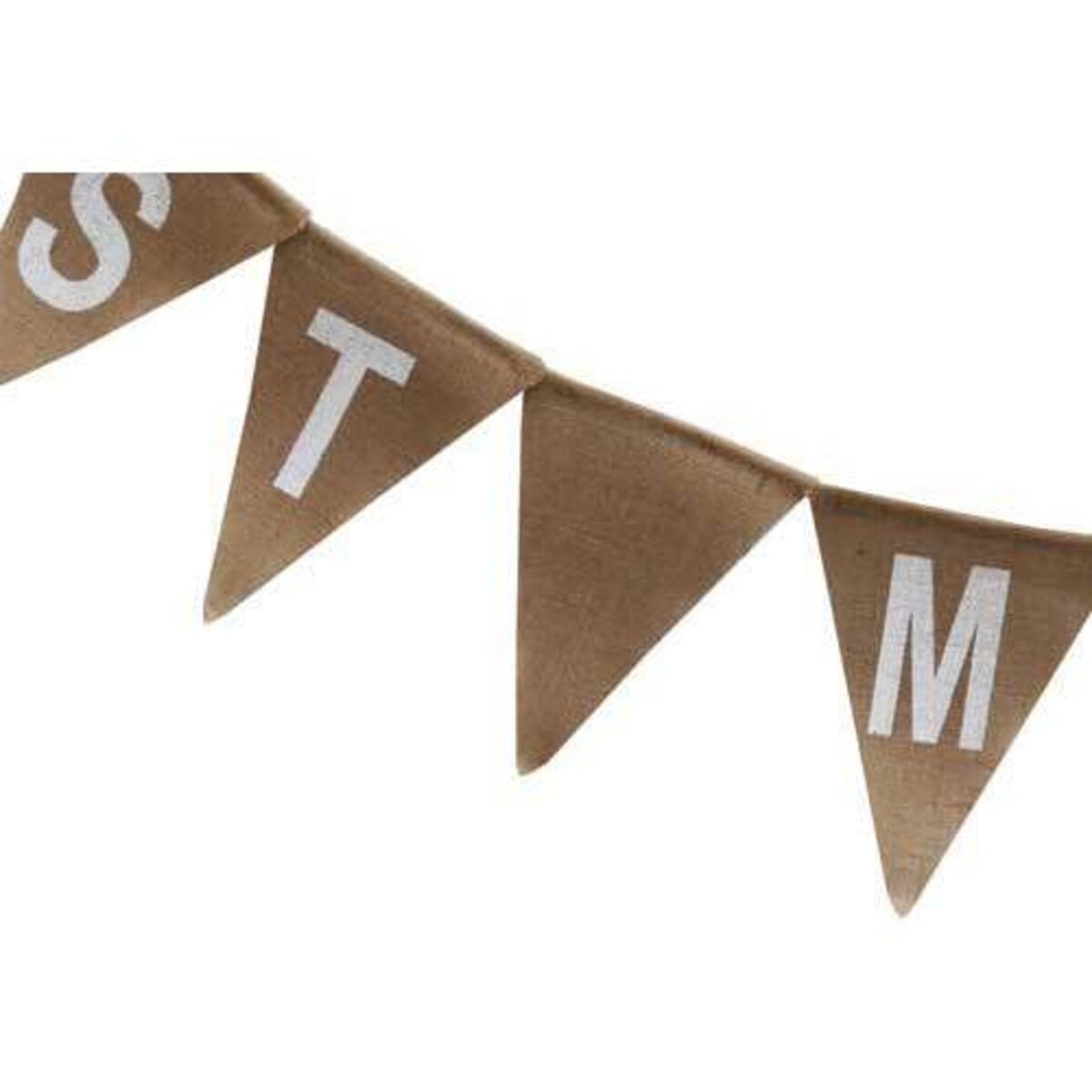 Celebrations as special as a wedding call for some unique indoor and outdoor decorations that will be remembered as much for their impact as for their tasteful presentation and when the venue needs to wear a certain look for a post wedding party what better way to build that up than by using a bunting made of hessian and white print to give it a really fresh and country style look. Buntings such as this instantly add that celebratory angle to the look of that place and when one hangs a bunting as long as this 200 cm hessian fabricated one there is bound to be a great enough impact. Add the look of country and farm look with simple throws, some bright festoons in certain places and see how well the loom comes together. An eco conscious initiative that will leave on wanting more such ideas in decor when celebrations demand some extra special look. The words are clearly visible in white on hessian and the triangles that bear the letters have absolute clarity in printing. Could be hung on walls, trees and even frames that can be erected on the lawn.