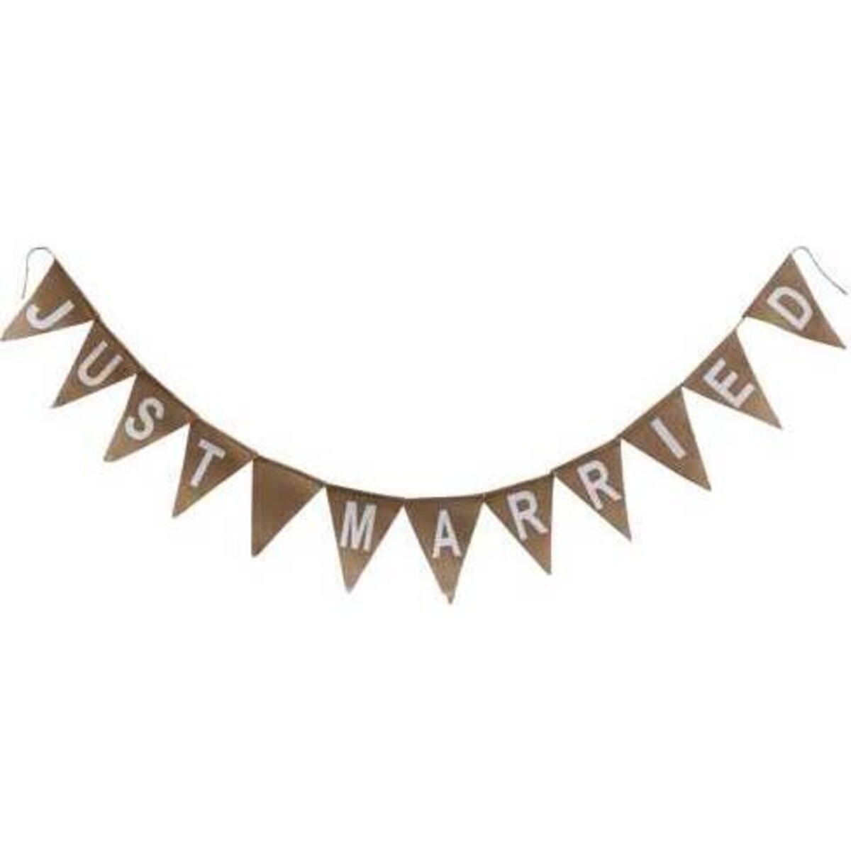 Celebrations need some special preparations and if the occasion itself is as super special as wedding, what better way to make the interiors ready for the big party than bunting made in a simple farm and countryside style like this - Just Married, bunting that captures the rustic style in its white and beige pattern.