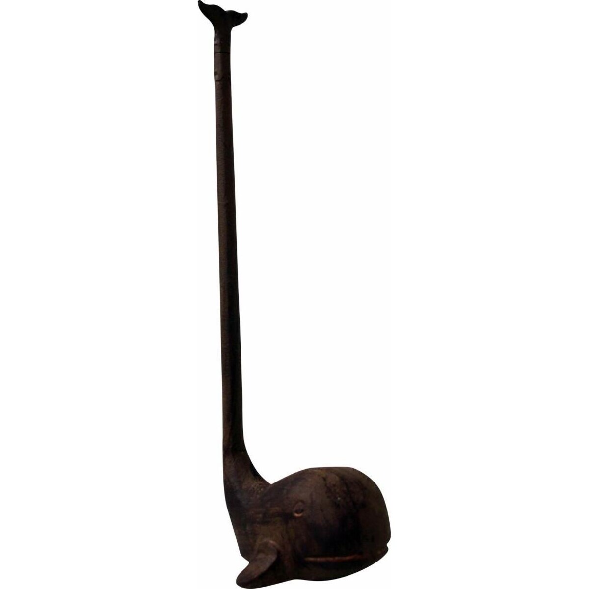 It will seem like the whale has beached - as it lies on its back flat out, its tail rising high up. The metal body is solid and its frontal portion beautifully proportioned bringing out the natural shape of this mammal in its exactness. The tiny little fins, the rounded head and the mouth are details you will find hard to miss. The tiny fork at the end of the tail and the well - balanced way the whale seem to be sitting atop tables, make sit a quaint but rare accents to find for your marine themed home. Place ot along your other seaside d?©cor articles and see the impact its rustic presence shall instantly create. Rugged, unpretentiously more like the creature is - here is an unadulterated form of a creature whose proud presence in the seas is thing of lore. Made solidly from metal, it will look impressively beautiful in its starkness and completely unique design.