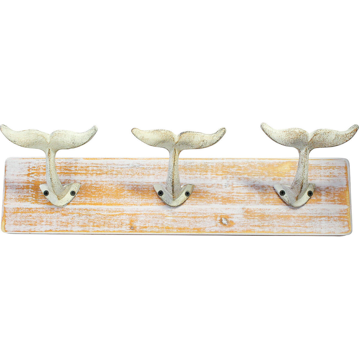 Adding an accessory that manages your hangable is the best means to keep coats, caps, umbrellas and satchels in places allotted to them and not have them strewn on chairs, tables and every possible space not meant for them. This can be particularly a problem with such articles as they have to be easily and quickly accessible to-giving them a hangable space that is sturdy and meant for those kinds of articles is what makes this whale tailed bracket a lovely one for your entryway or any room that needs a style update on the wall. The bracket is made from wood with three sturdy whale tails that have two prongs that makes prominent spaces for two large hangables. The bracket is 50 cm long with a height of 16 cm. The prongs themselves are deep with a jut out or 11 cm. The bracket come sin lovely natural wood shade that compliments the whale tails made of metal. Add it to your marine themed home or begin whole new look in some space of your choice. As sited for your rooms as it is for the entryway.