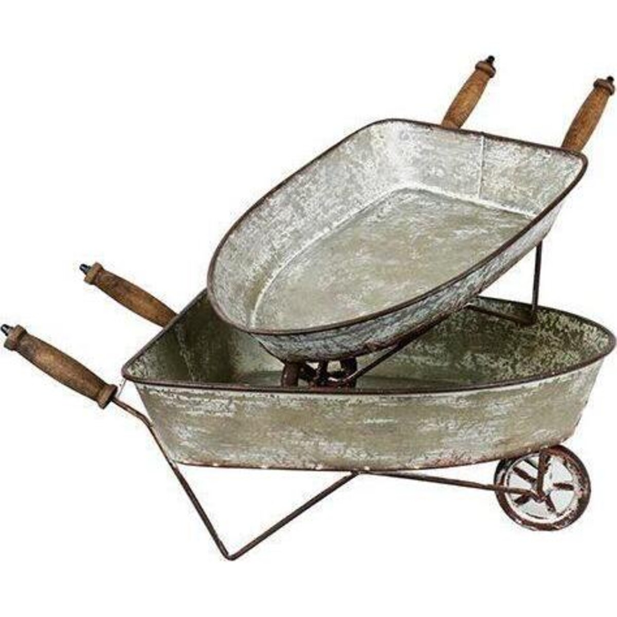 Make your cottage and farm look corner liven up with some more charm with this lovely tiny little wheelbarrow whose little detailing and the capacity to help in your décor will amaze you. Versatile in many senses, it can be used to place pottery on its flat surface or be used for keeping flowers and a bundle hay to complete the look. Place a larger wheelbarrow by its side and you could make a set. The tiny wooden handles, the corrugated sheet metal body is all very rustic and vintage in look. You could use the tiny space above for placing your other smaller earthenware of for placing some potted plants for a country fresh appeal. It would cohesively contribute in creating a country fresh appeal in your home. The wheelbarrow is well balanced and maybe simply rest on its stand. The smaller version is all of 20 cm long and 25 cm wide while its height is barely 16 cm.