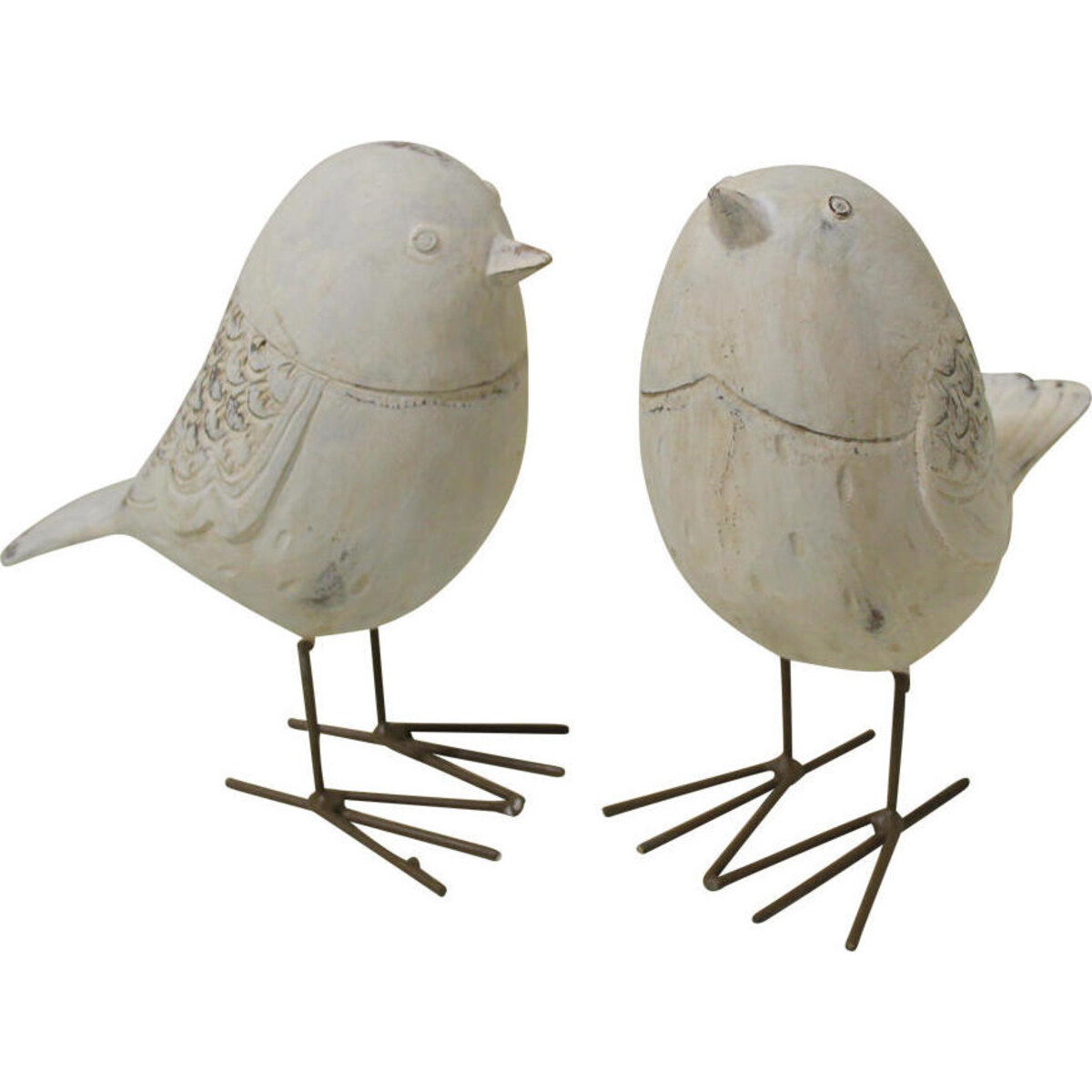 It will be wonderful to be greeted by these little white birds that will give a warm inviting look to any home, store or office space. Made of resin, the bird's features like eyes, beak and feathers are nicely carved and stained to give a trendy worn - out look that will make a pleasing addition to your decor.