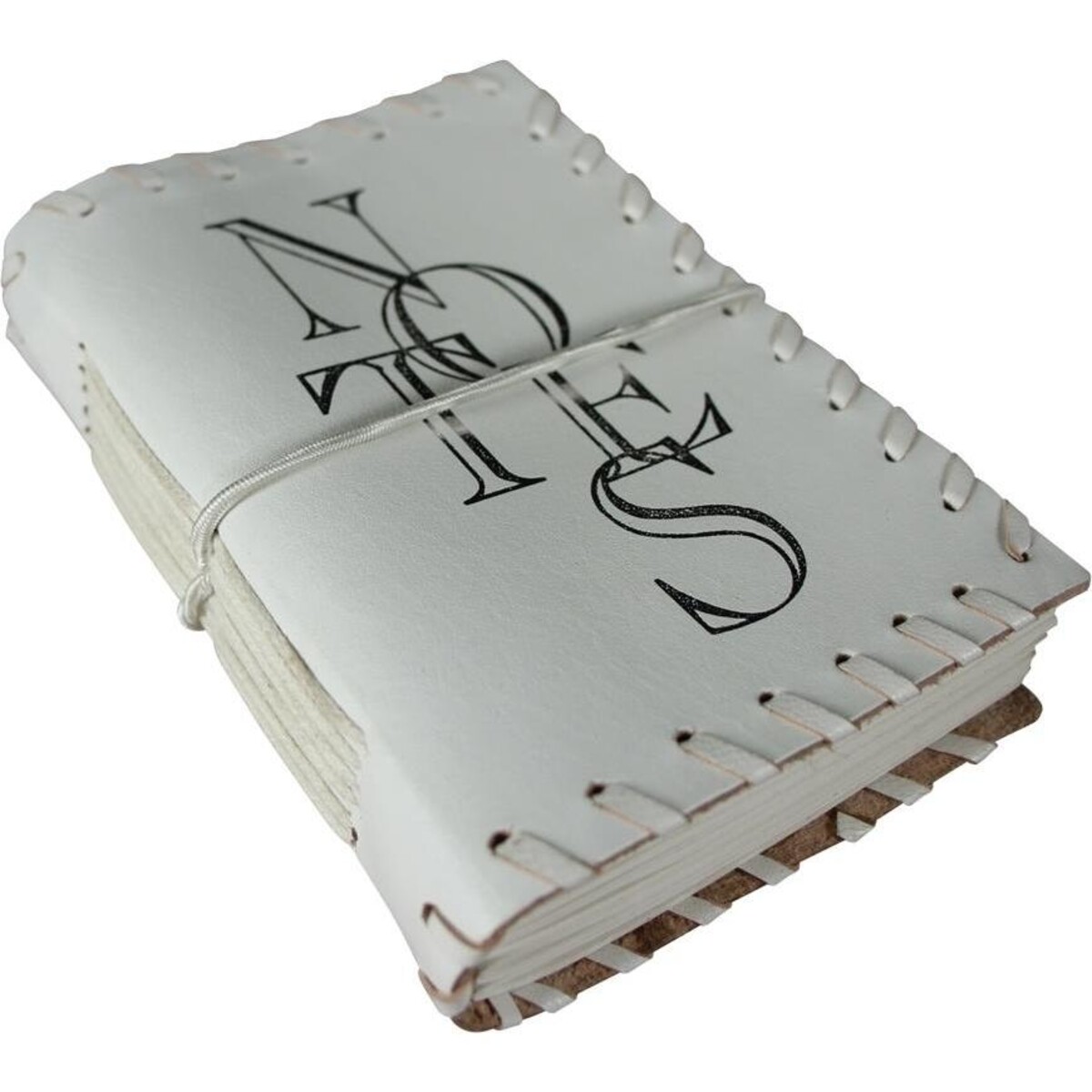 A stunner of a notebook with a white leather upper that will age gracefully acquiring creases and age marks lending it more style and character. The tie - up style on the edges adds to its rustic appeal as well. The word Notes is scripted across it and strikes a wonderful contrast in black on the white backdrop. The notebook is compact in size and can be brought to use as a regular note taking accessory or could be your travel journal where on its smooth pages you could pen down any amounts of observations and ideas. Use it every day or place it on your desk for all kinds of writings - academic or creative. A perfect gift for anyone who loves great quality stationery and would see the wonderful blend of quality ad good looks.