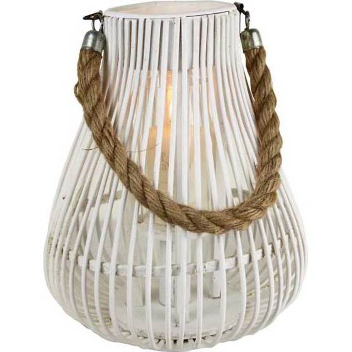 Wicker shaped like a bulb with a small little glass cylinder within that can hold a pillar candle - this simple design too can make all the difference to any corner where you may place this lantern of if you so desire hung from any place maybe in conjunction with a few more, it can provide you all the ambient lighting you need for the party. Delicate wicker and the curved crafting to create the shape is exquisite especially when in the evening the light filters through the tiny crevasses and makes pretty pattern all around. The thick rope handle will allow easy portability and also give you a hanging option. The base of the lantern is flat and thus it could be kept on any table or the floor or at any desirable place. It's 28 cm in height and white in colour which makes it worth a second look in the mornings when it's not actually doing its crucial job. Such are the designs from Lavida that any home will be grateful for their presence.