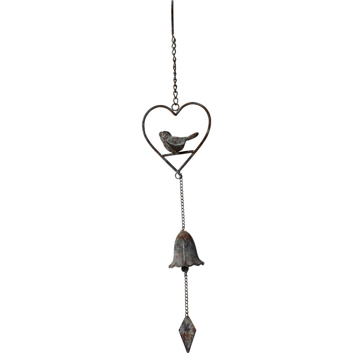 These wind bells feature a slightly weathered and worn appearance, as if they've been well - loved for years but still have plenty of life left in them. Their charm comes from the lovely cut - out heart at the centre that has a little bird sitting happily on the inside as a single bell dangles from below. A hook at the top allows them to hang from a variety of surfaces. Whether you put them up on a front or back porch or even inside in front of an open window, they're going to make a wonderful addition to any home.