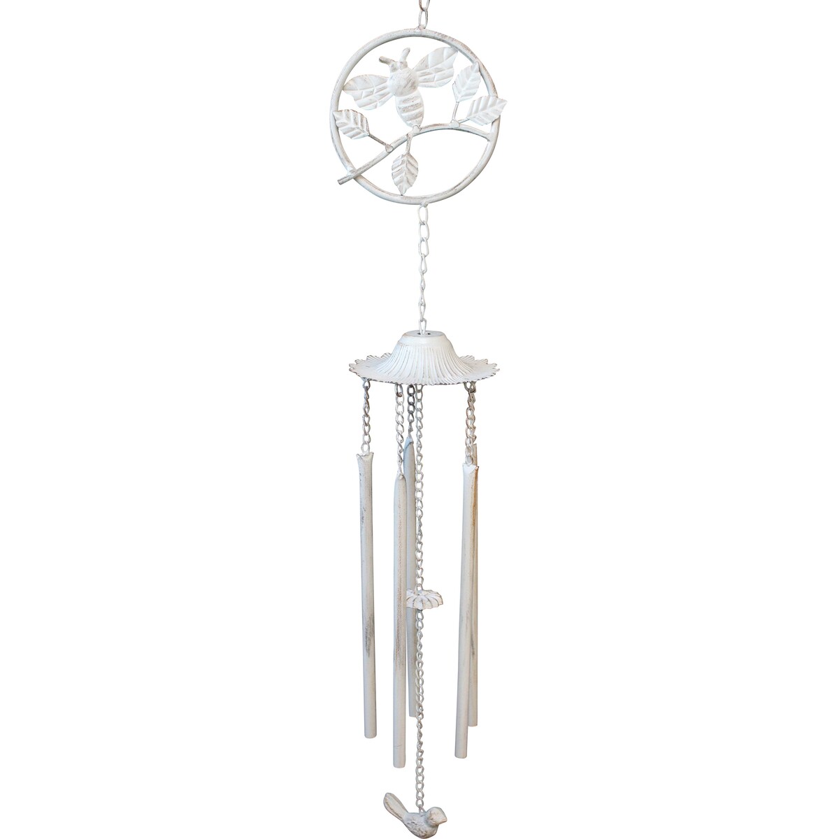 Windchime Bee Rustic White is an adorable metal piece that can give an elegant touch and will breathe serenity into any interior. A statement piece that is sure to be valued and proudly displayed. It is a great décor to one's space, adding a sweet and rustic charm. This metal chime is great for creating a peaceful and calming atmosphere indoors. It can be hung near the window, to make use of air currents that will create an even more soothing sound. Careful placement, ensuring maximum breeze infiltration around the chime, will result in its melodious tones ringing out throughout the home almost effortlessly! Best to be placed in an area that will be lovingly admired by every visitor.